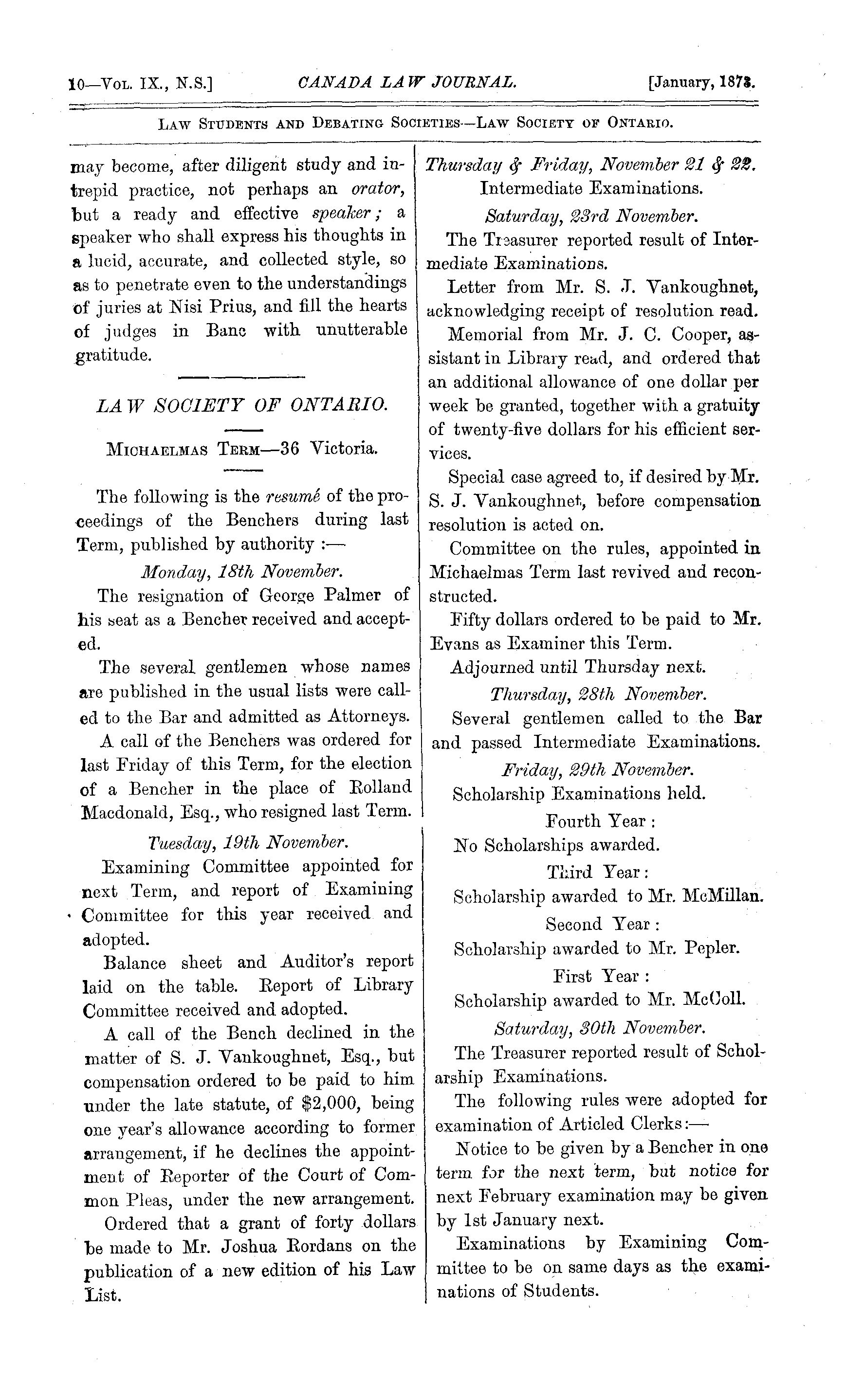 The Canada law journal : [no. 1] (Jan. 1873)]