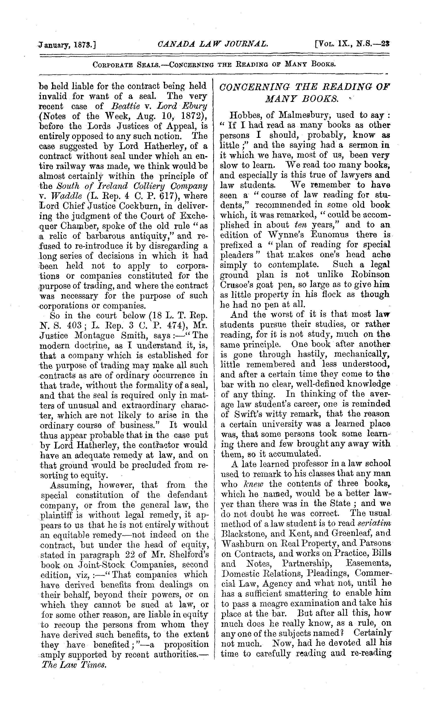 - The Canada law journal [New ser. v. 9, [no. 1] (Jan. 1873)]