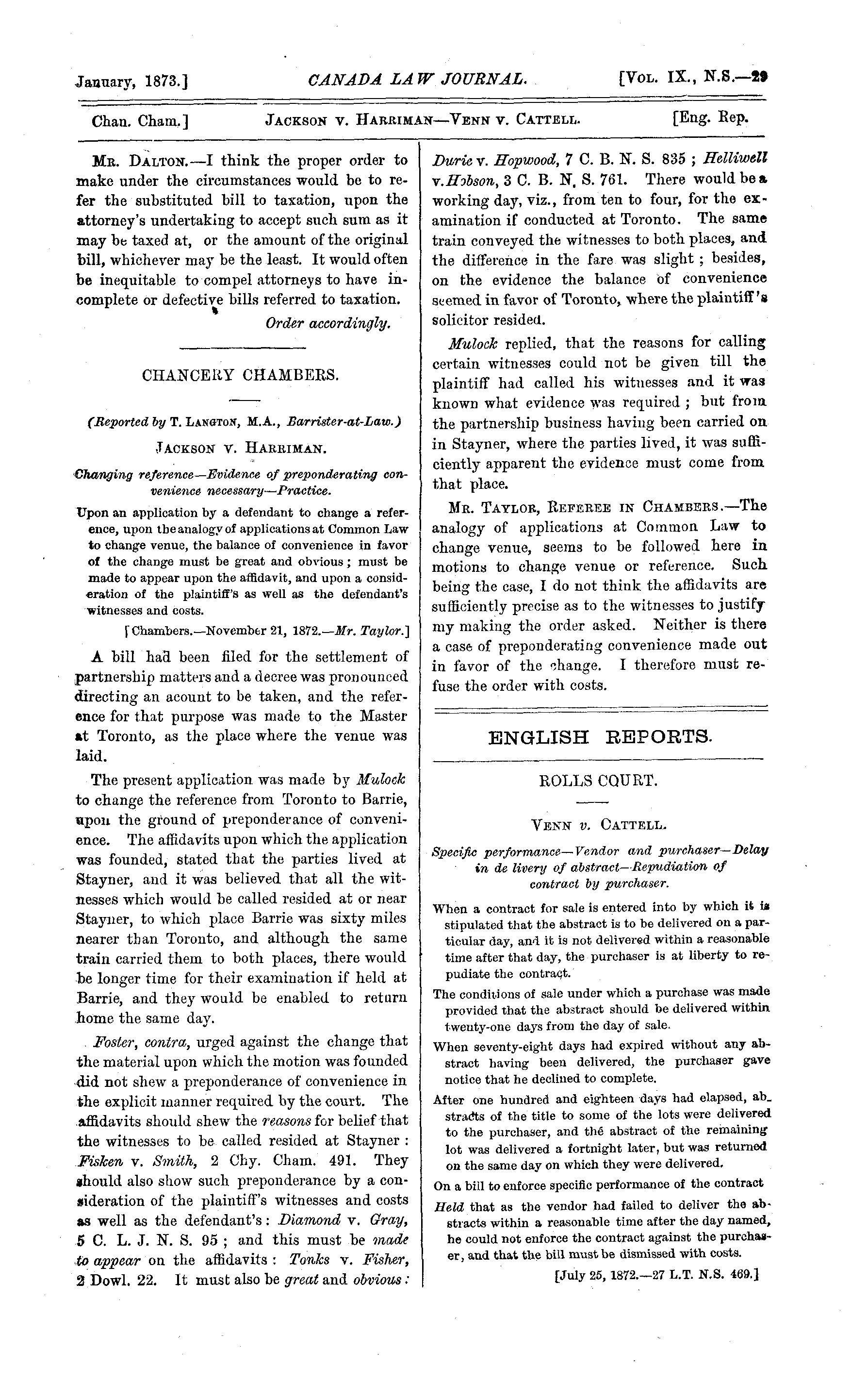 - The Canada law journal [New ser. v. 9, [no. 1] (Jan. 1873)]