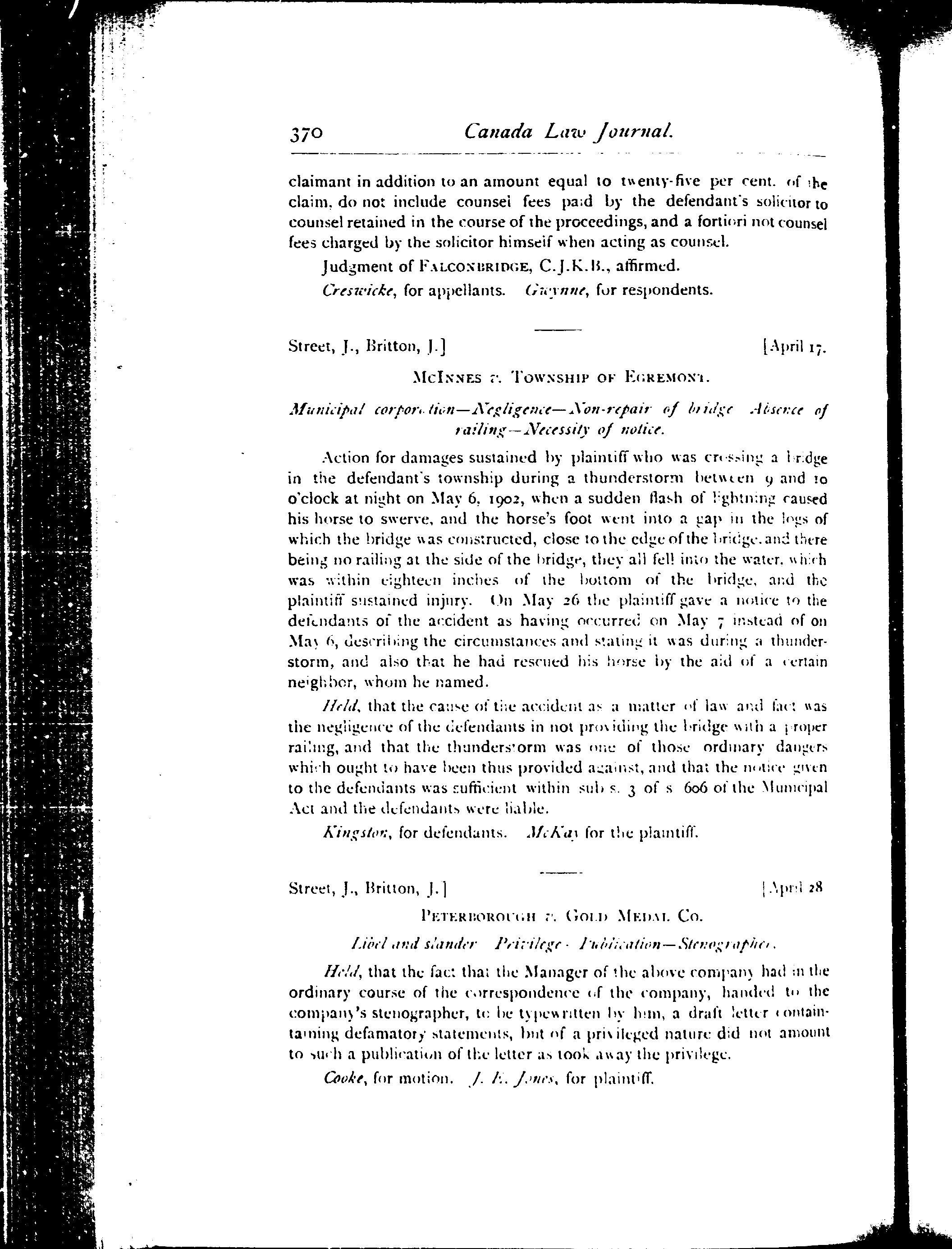 Canada law journal [Vol. 39, no. 10 (May 15, 1903)]