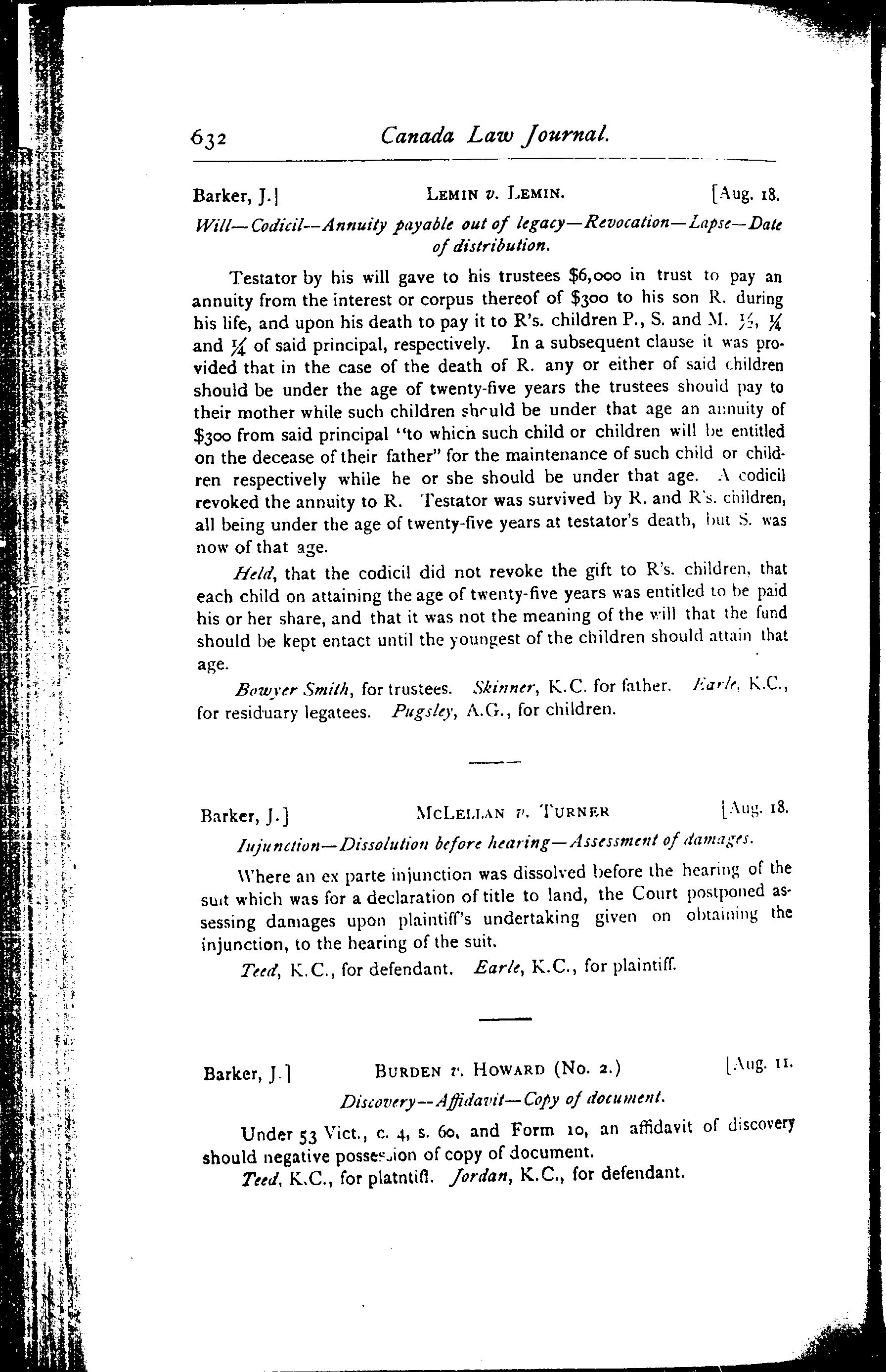 - Canada law journal [Vol. 39, no. 19 (Oct. 1, 1903)]