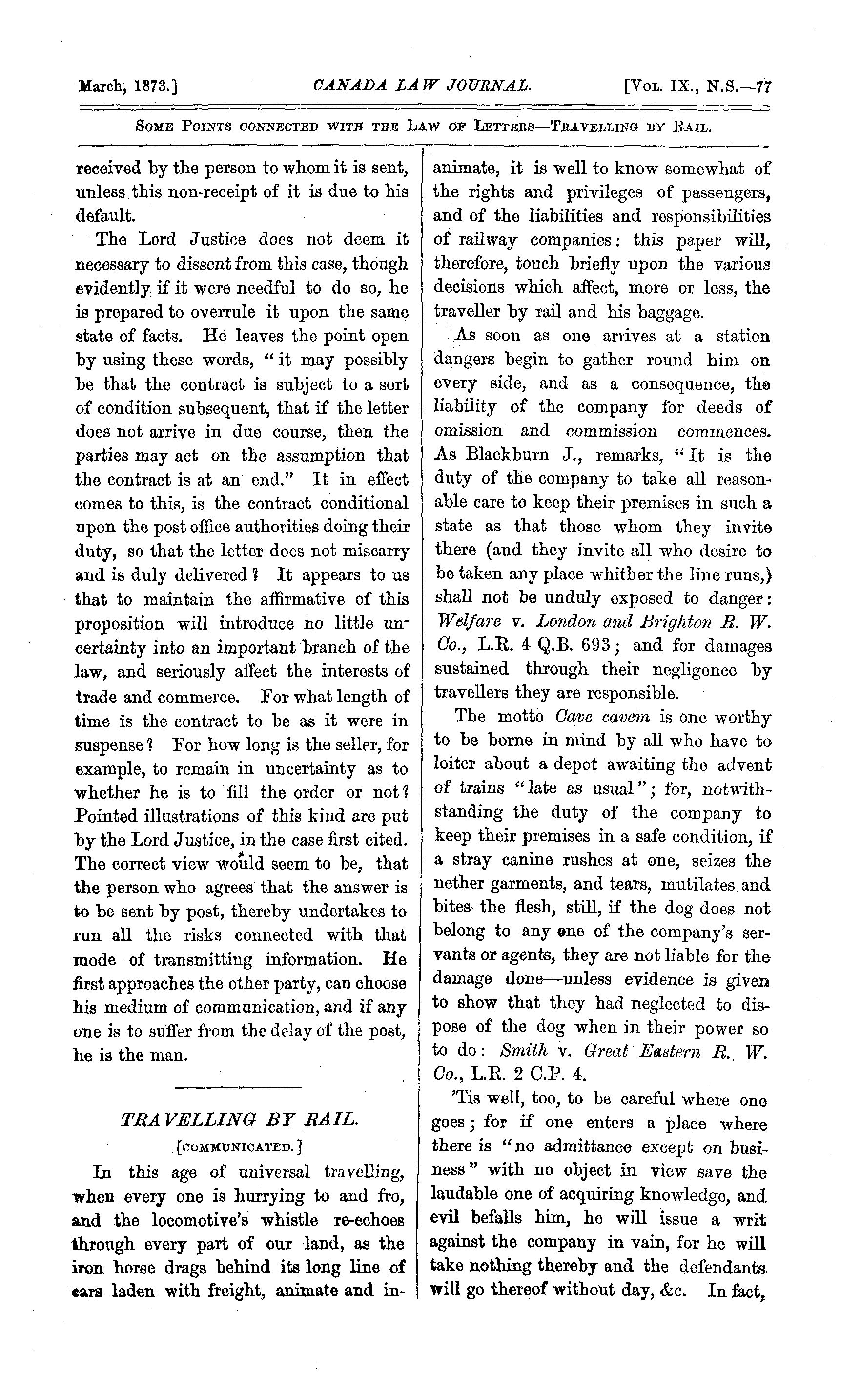 - The Canada law journal [New ser. v. 9, [no. 3] (Mar. 1873)]