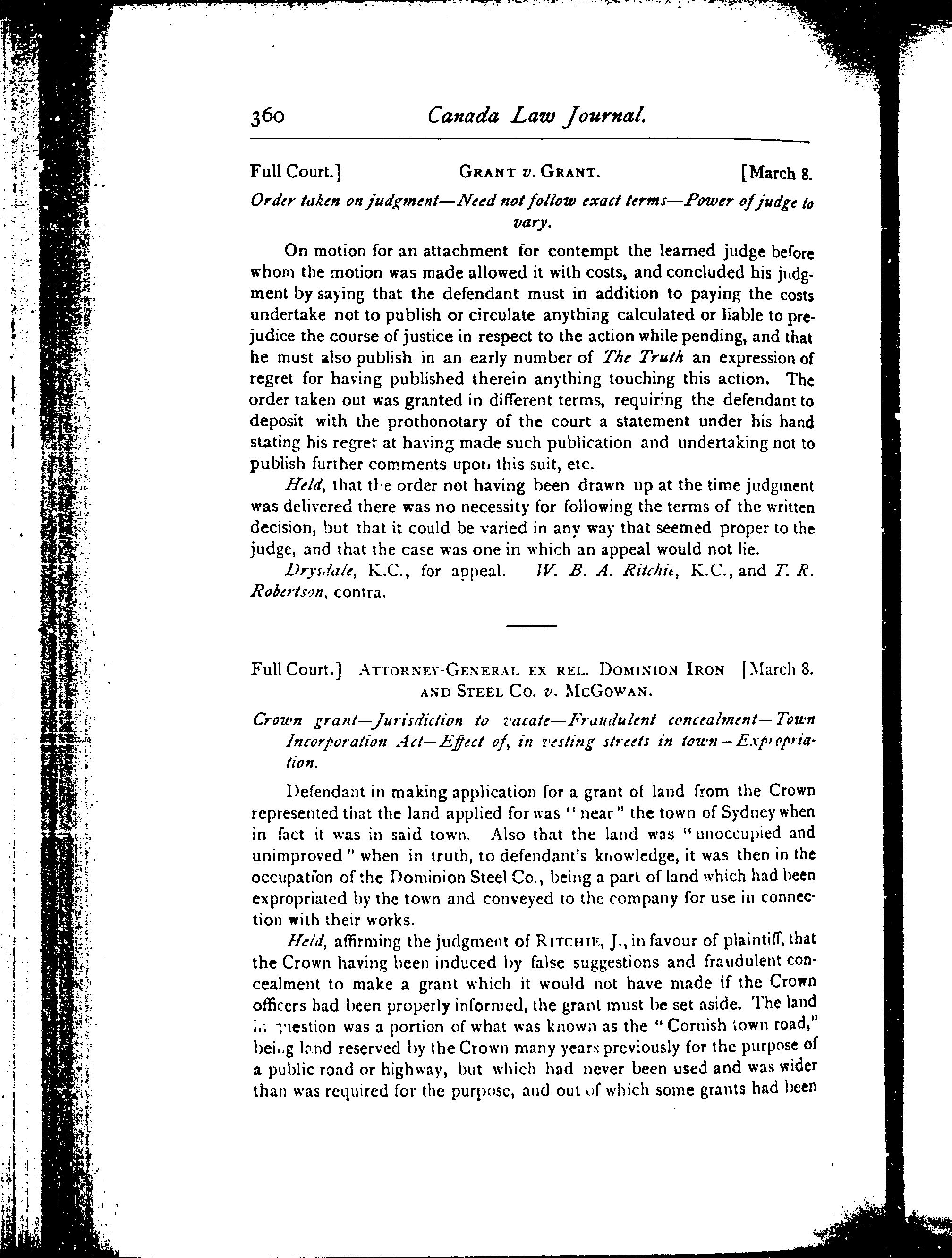 - Canada law journal [Vol. 40, no. 10 (May 15, 1904)]