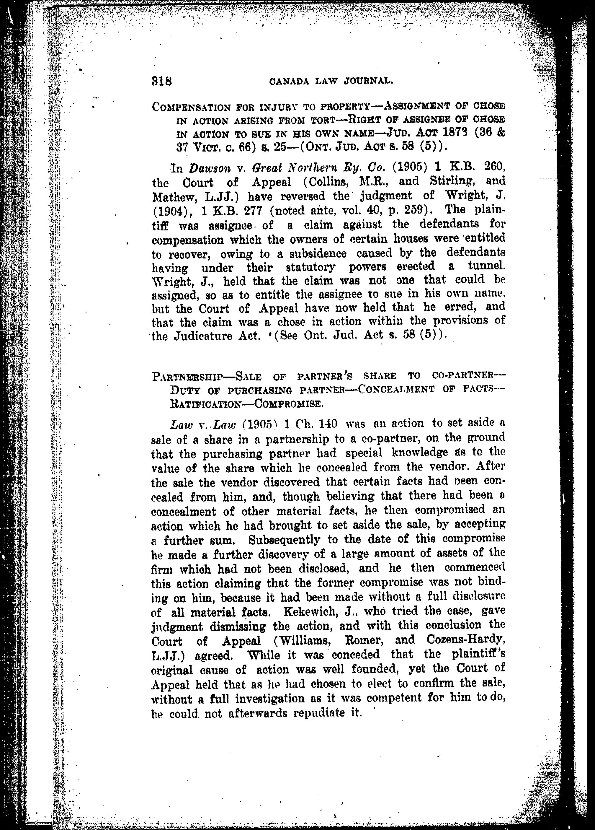 [Toronto : Canada Law Book Co., 1905]; 40 images avec recherche en texte intégral