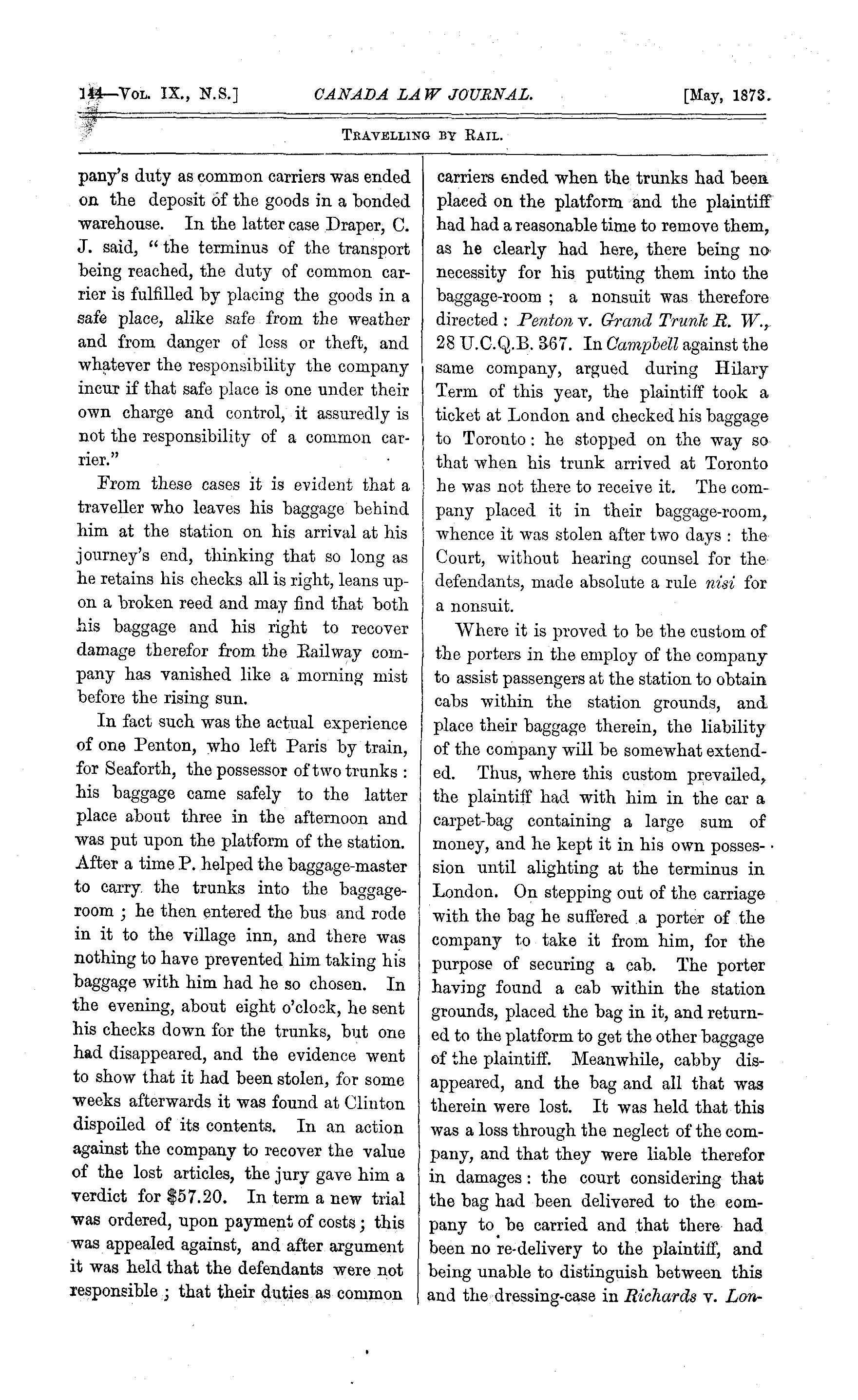 - The Canada law journal [New ser. v. 9, [no. 5] (May 1873)]
