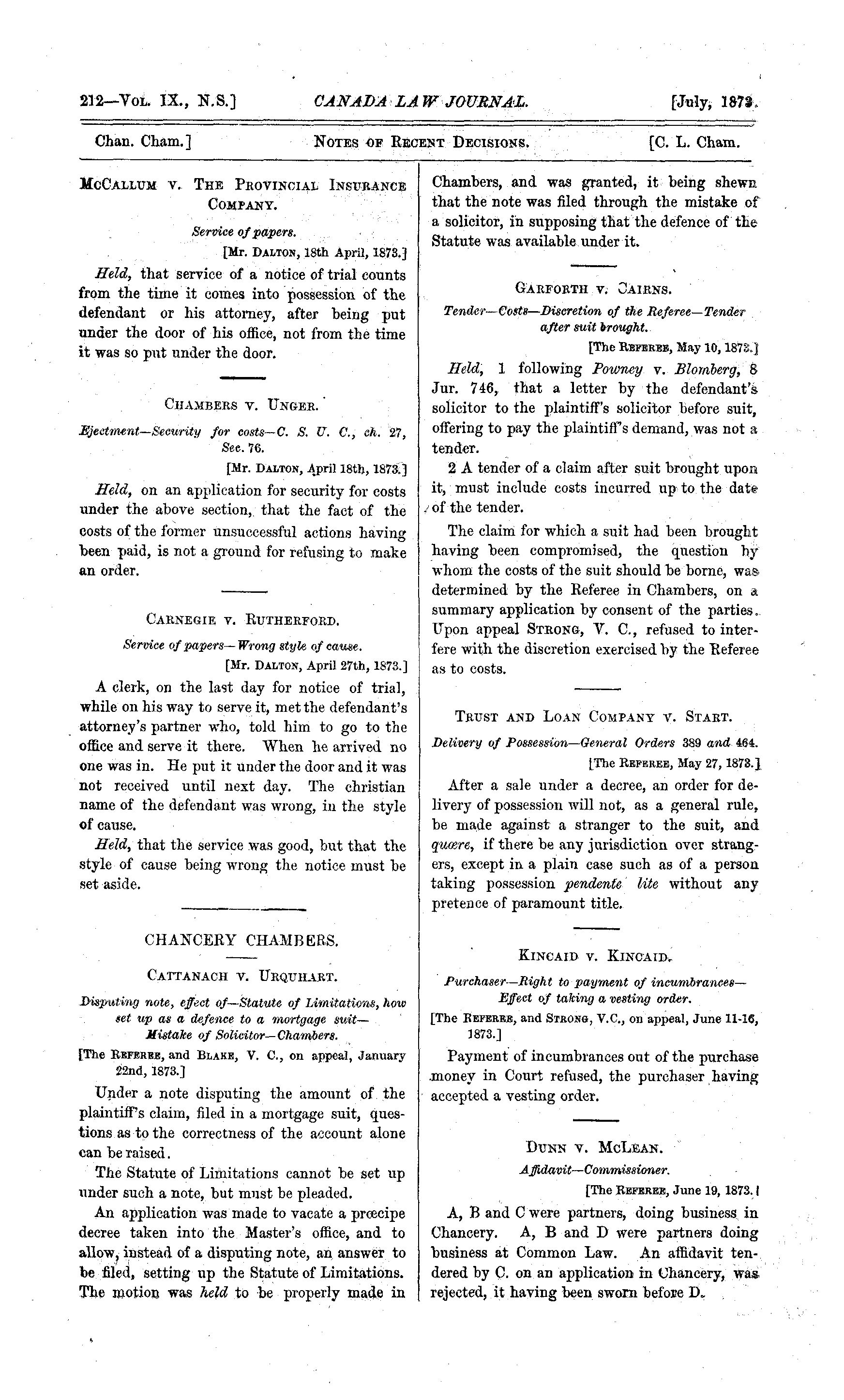 - The Canada law journal [New ser. v. 9, [no. 7] (July 1873)]