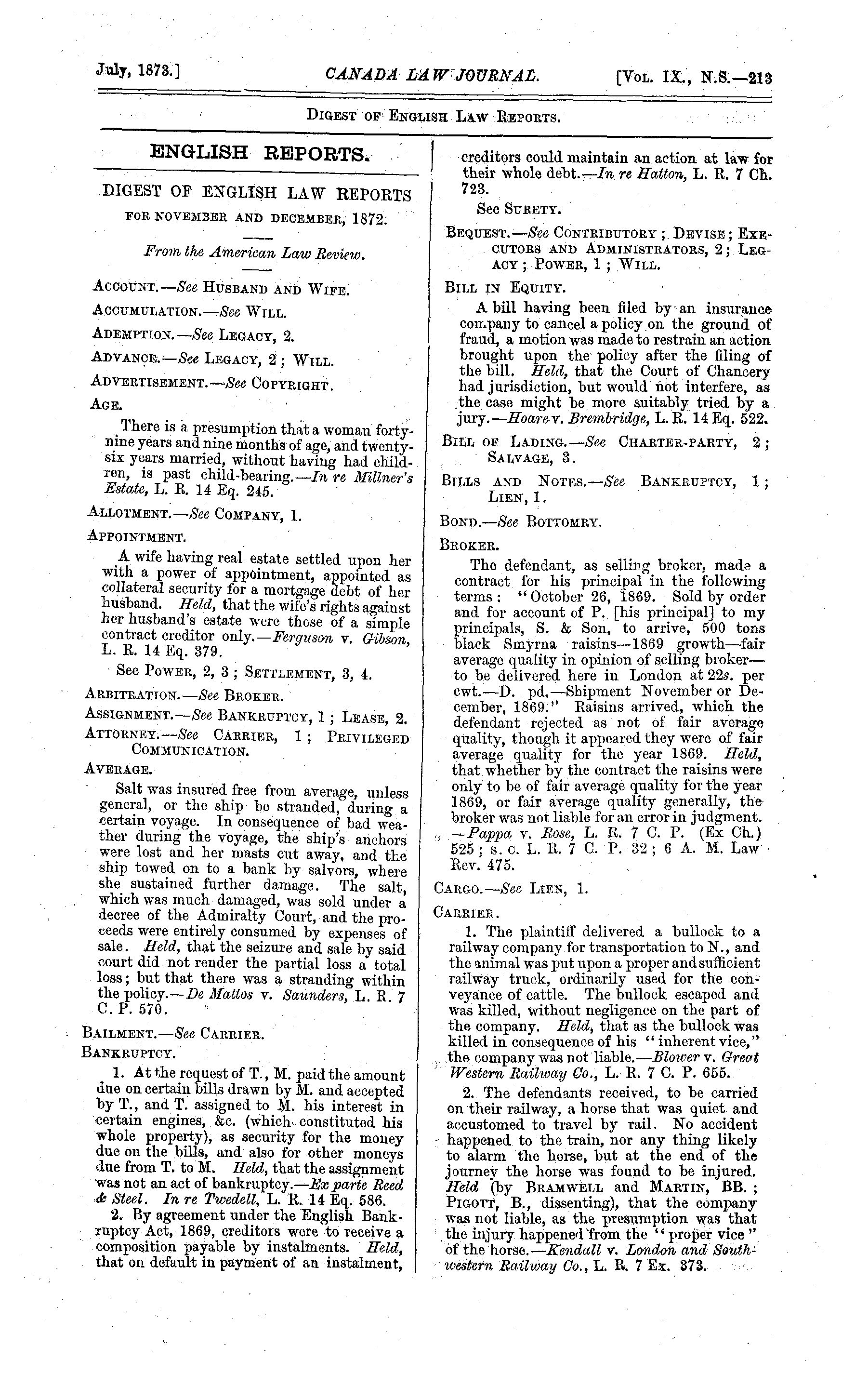 The Canada law journal : [no. 7] (July 1873)]