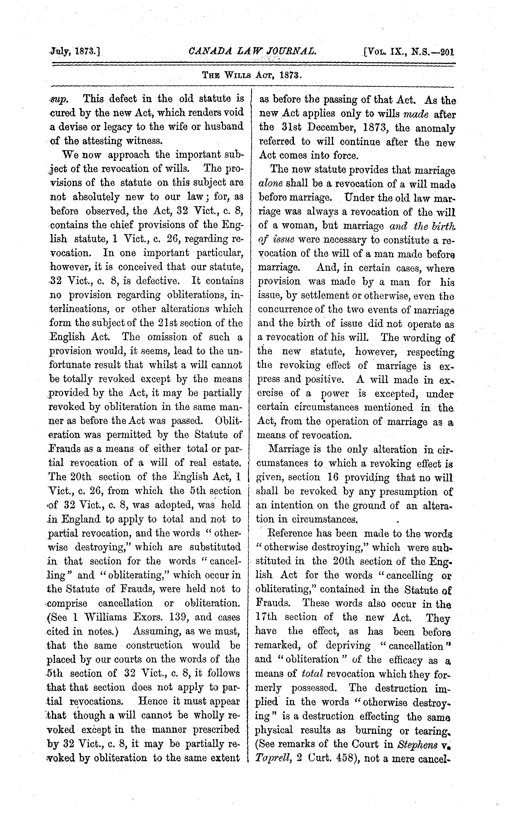 - The Canada law journal [New ser. v. 9, [no. 7] (July 1873)]