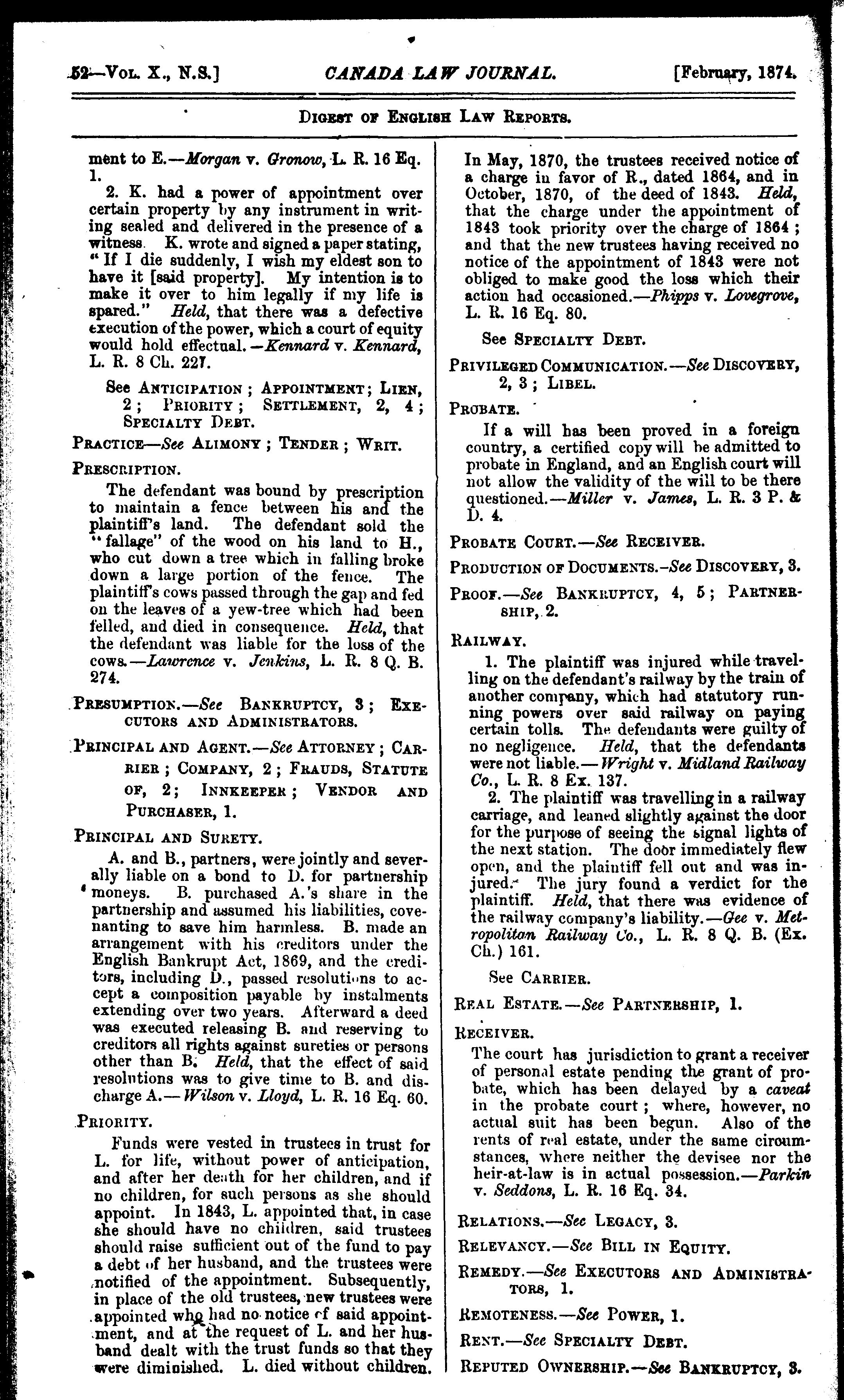 - The Canada law journal [New ser. v. 10, [no. 2] (Feb. 1874)]