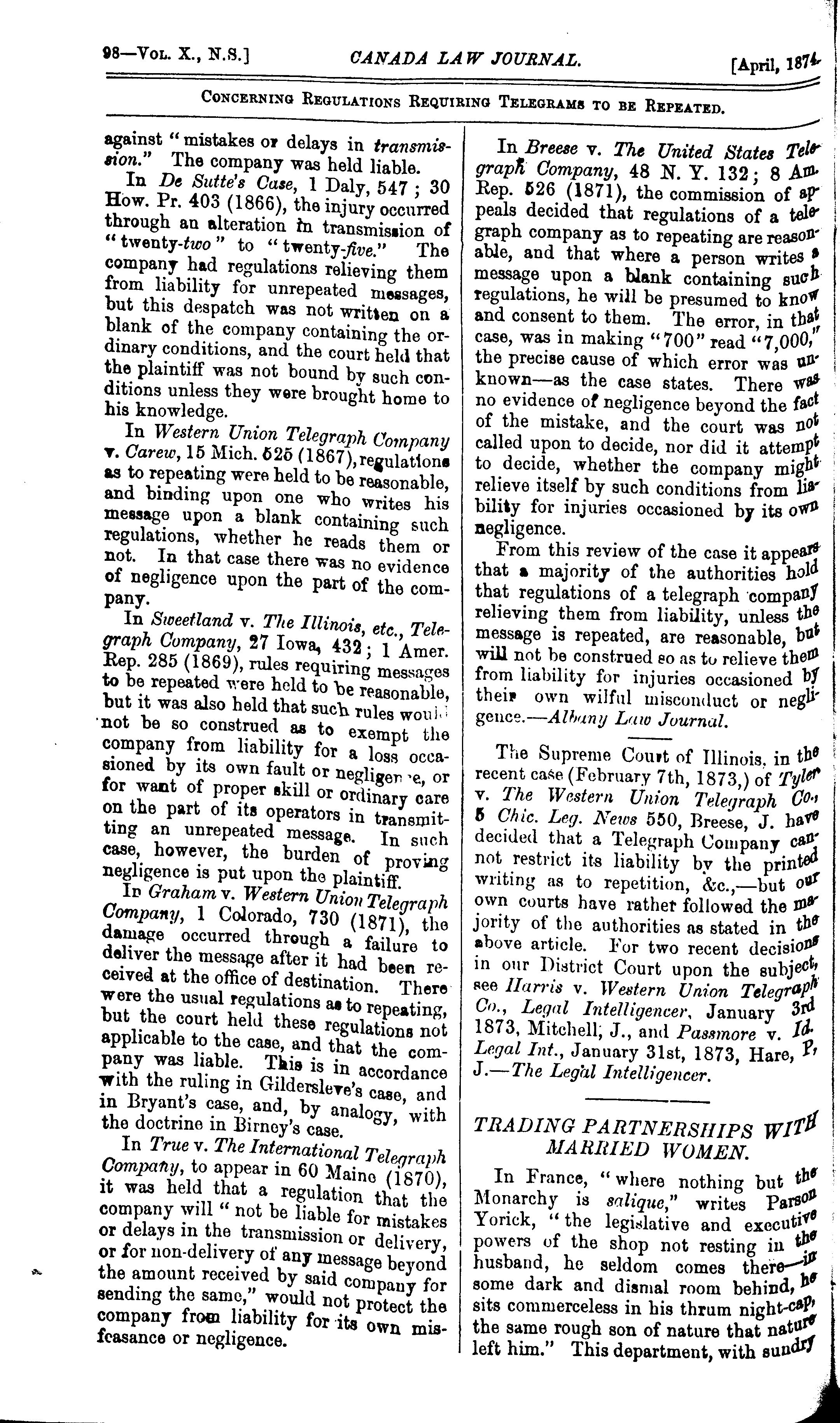 - The Canada law journal [New ser. v. 10, [no. 4] (Apr. 1874)]