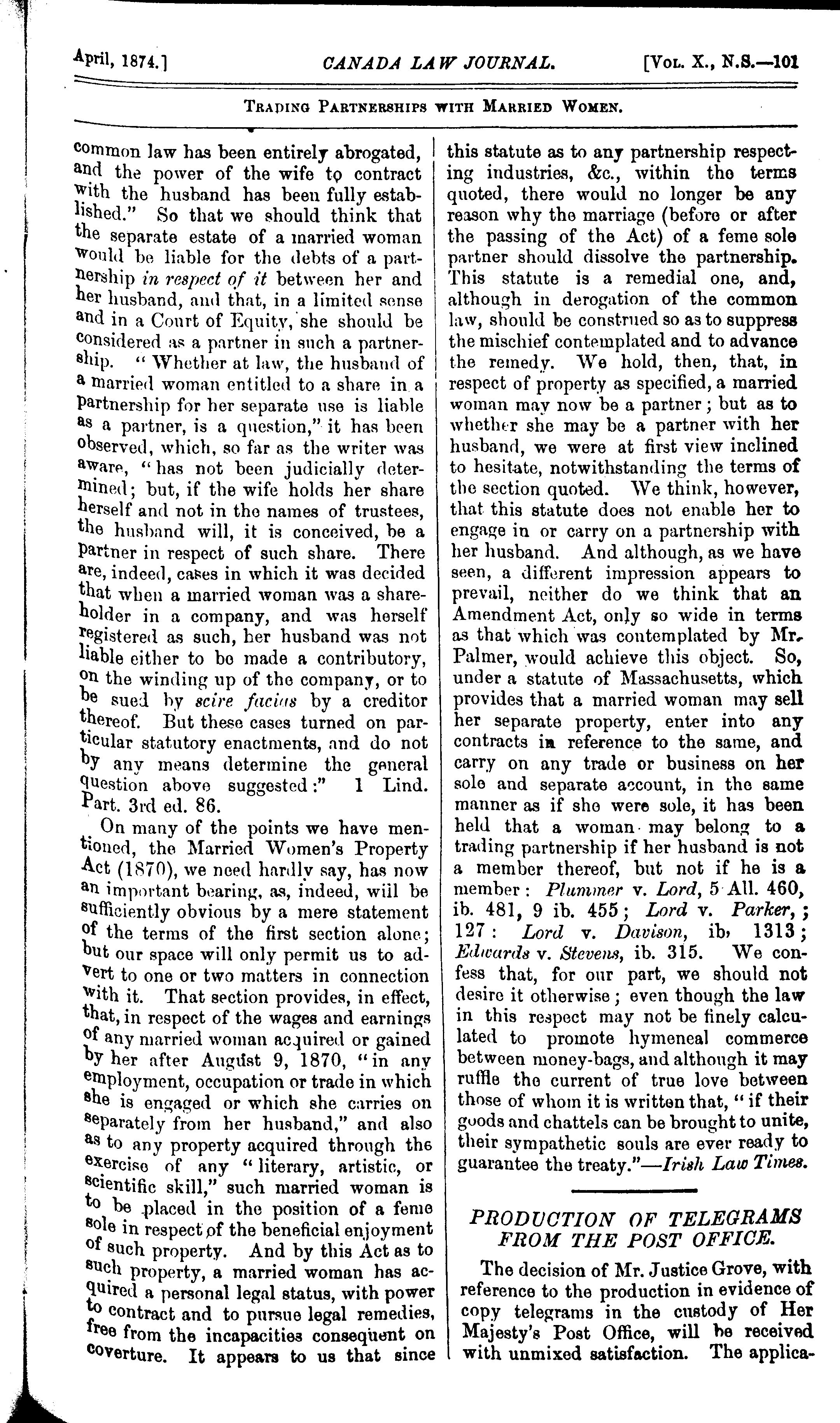 - The Canada law journal [New ser. v. 10, [no. 4] (Apr. 1874)]
