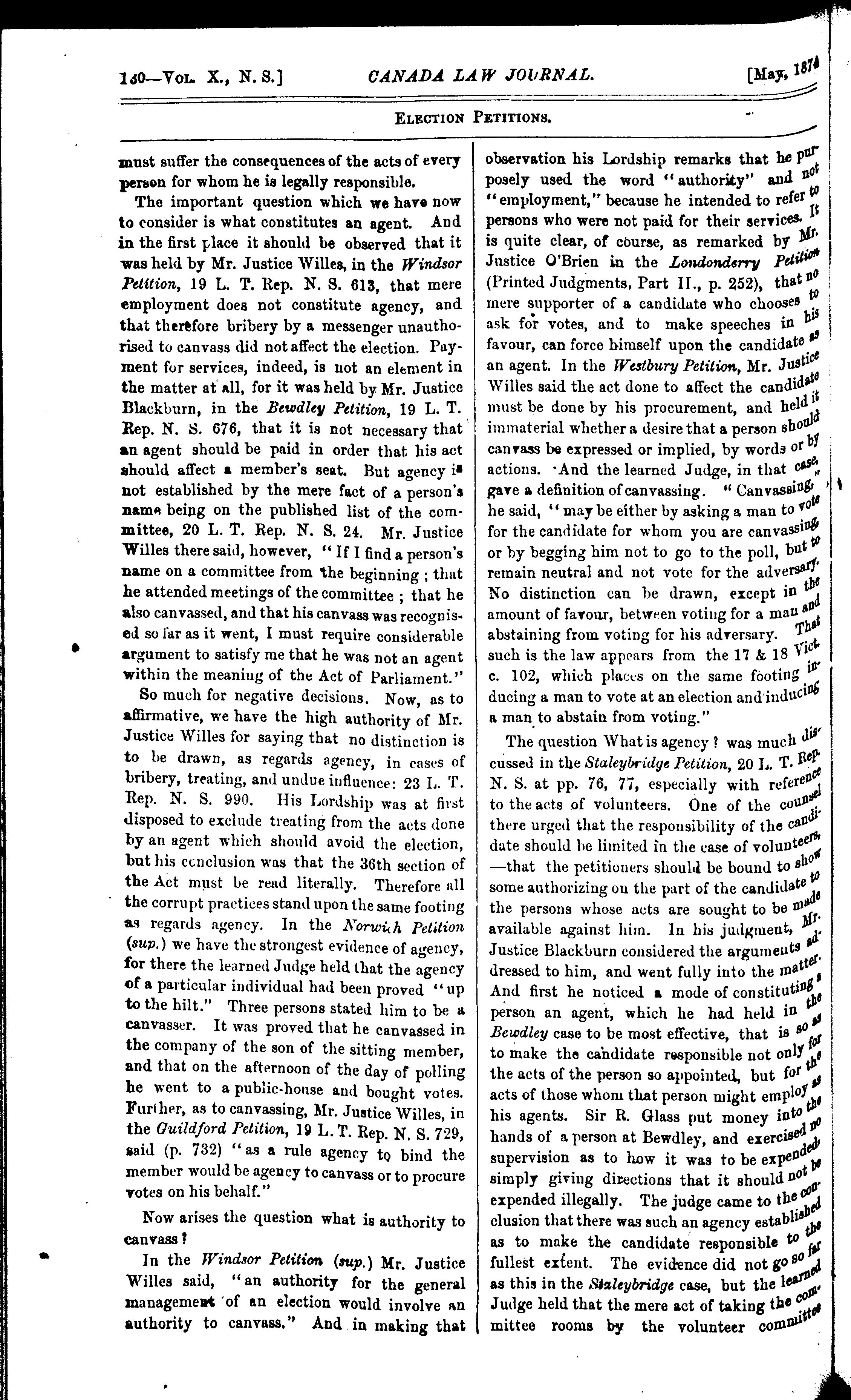 The Canada law journal [New ser. v. 10, [no. 5] (May 1874)]