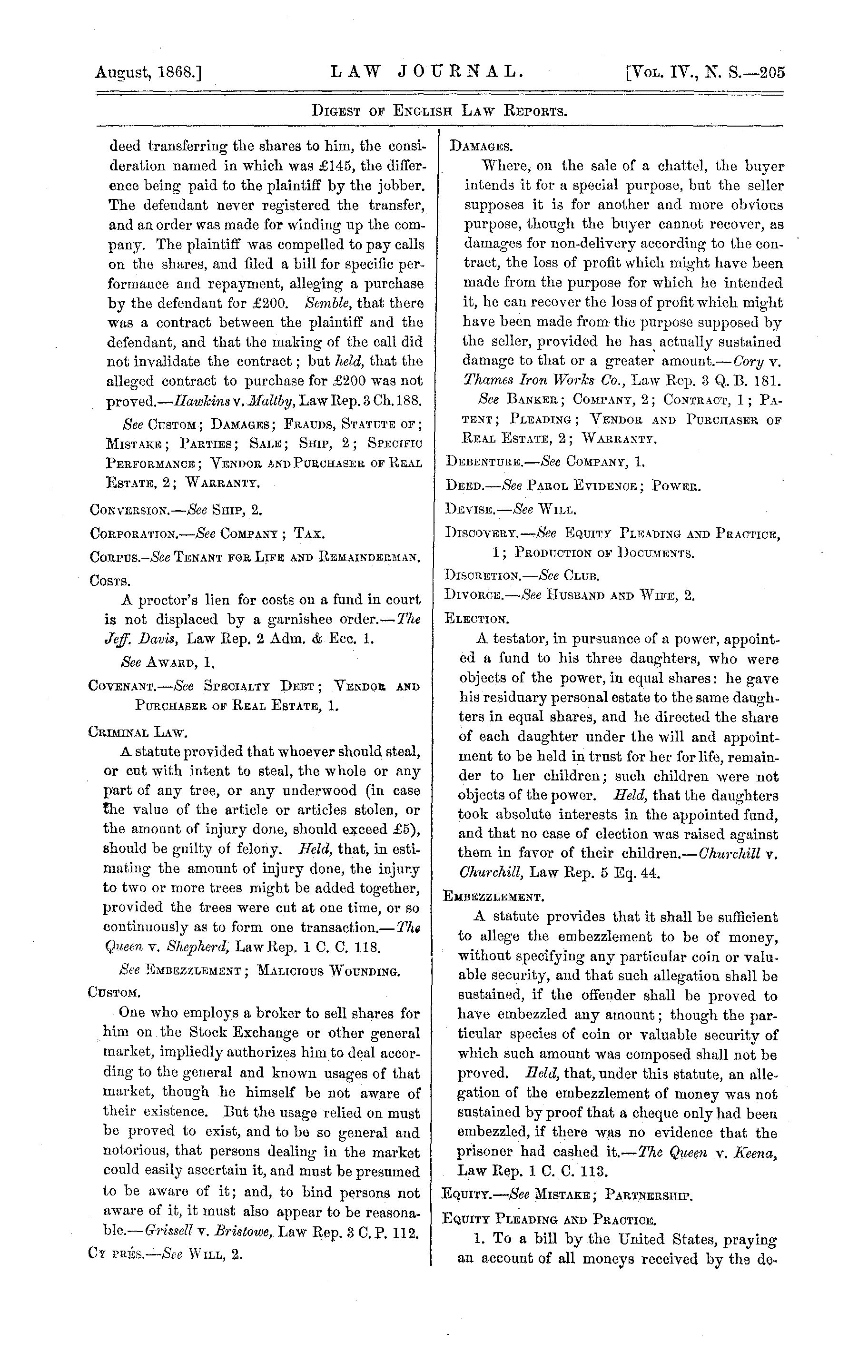 - The Canada law journal [New ser. v. 4, [no. 8] (Aug. 1868)]