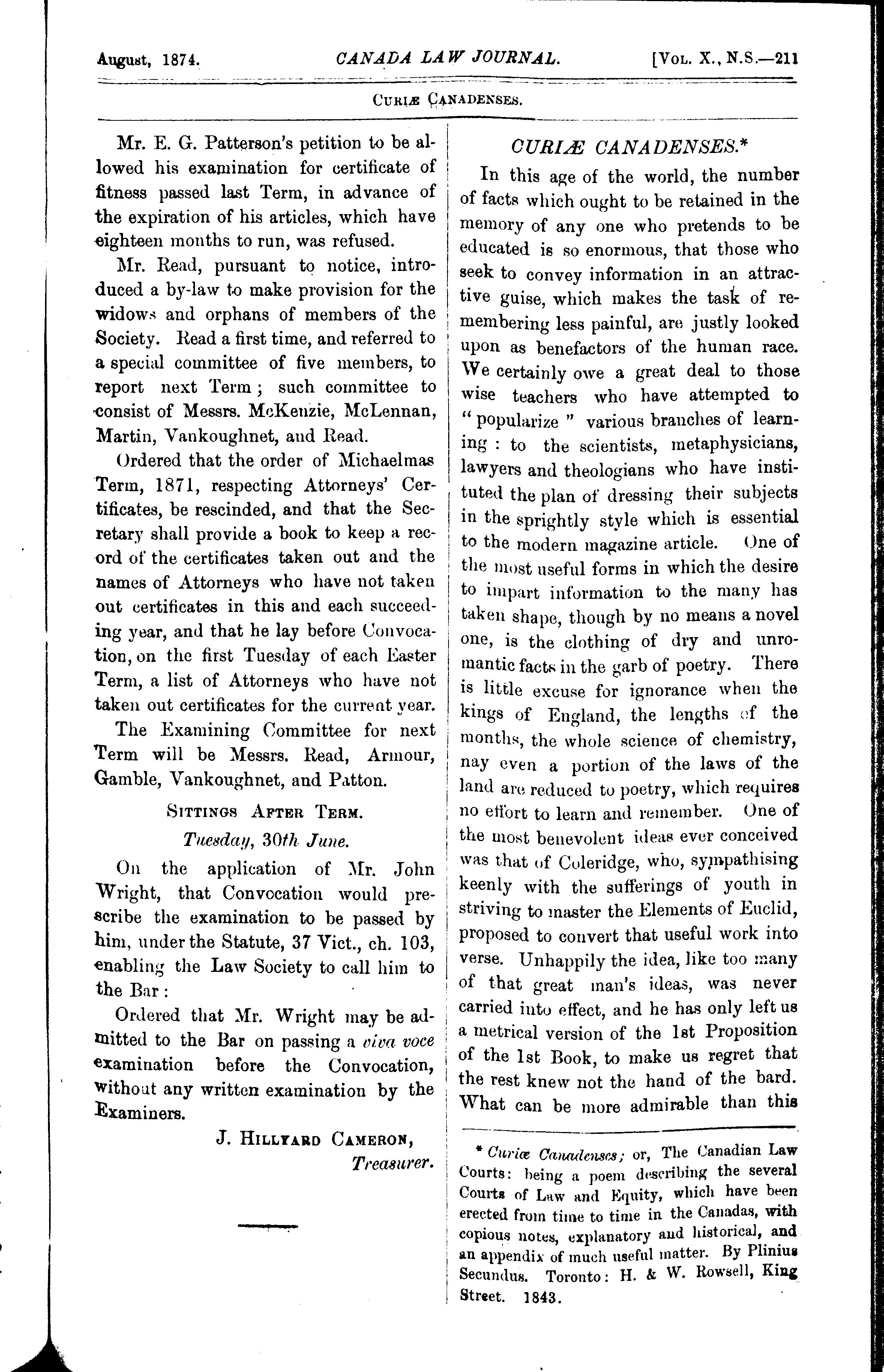 The Canada law journal : [no. 8] (Aug. 1874)]
