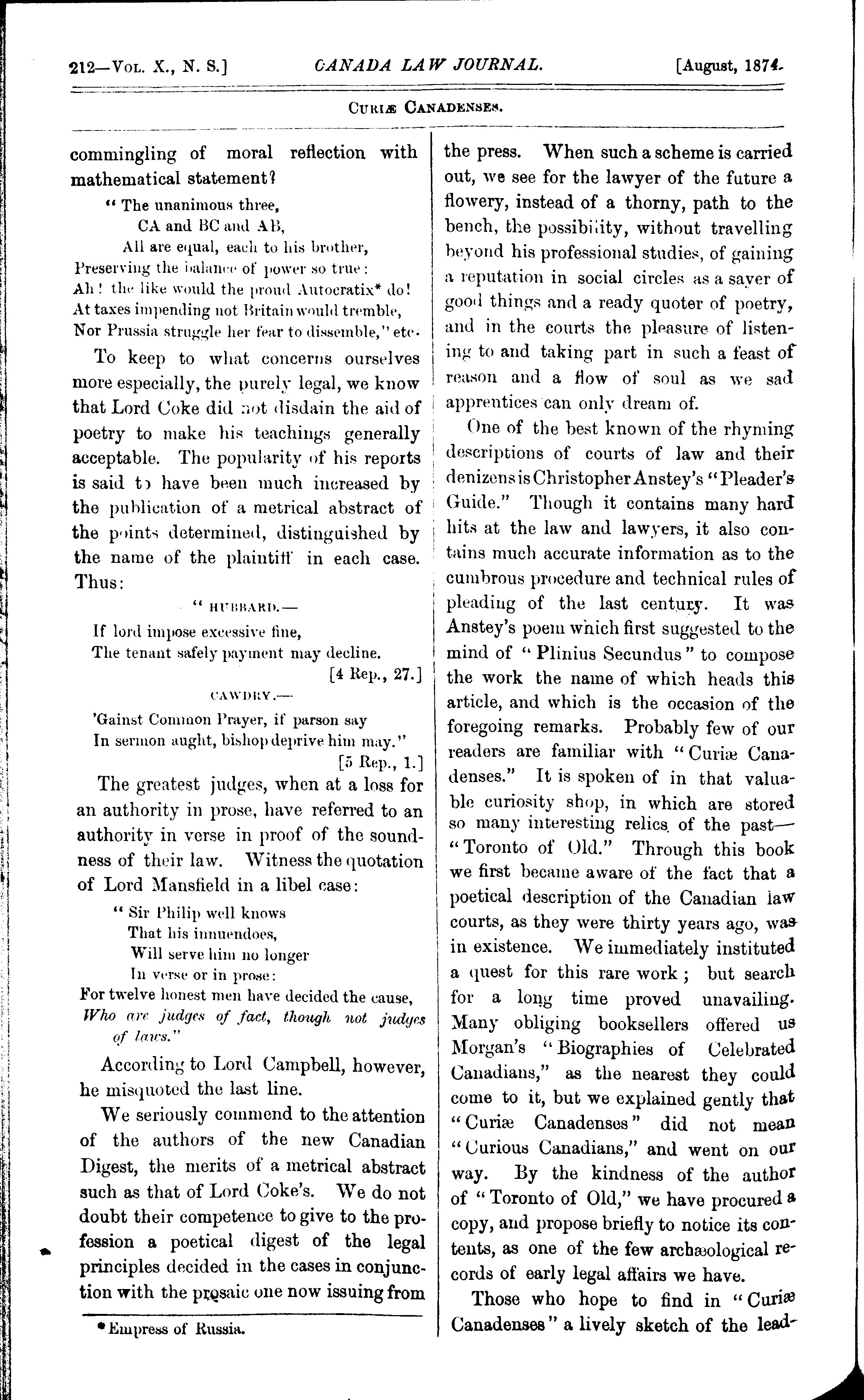 - The Canada law journal [New ser. v. 10, [no. 8] (Aug. 1874)]