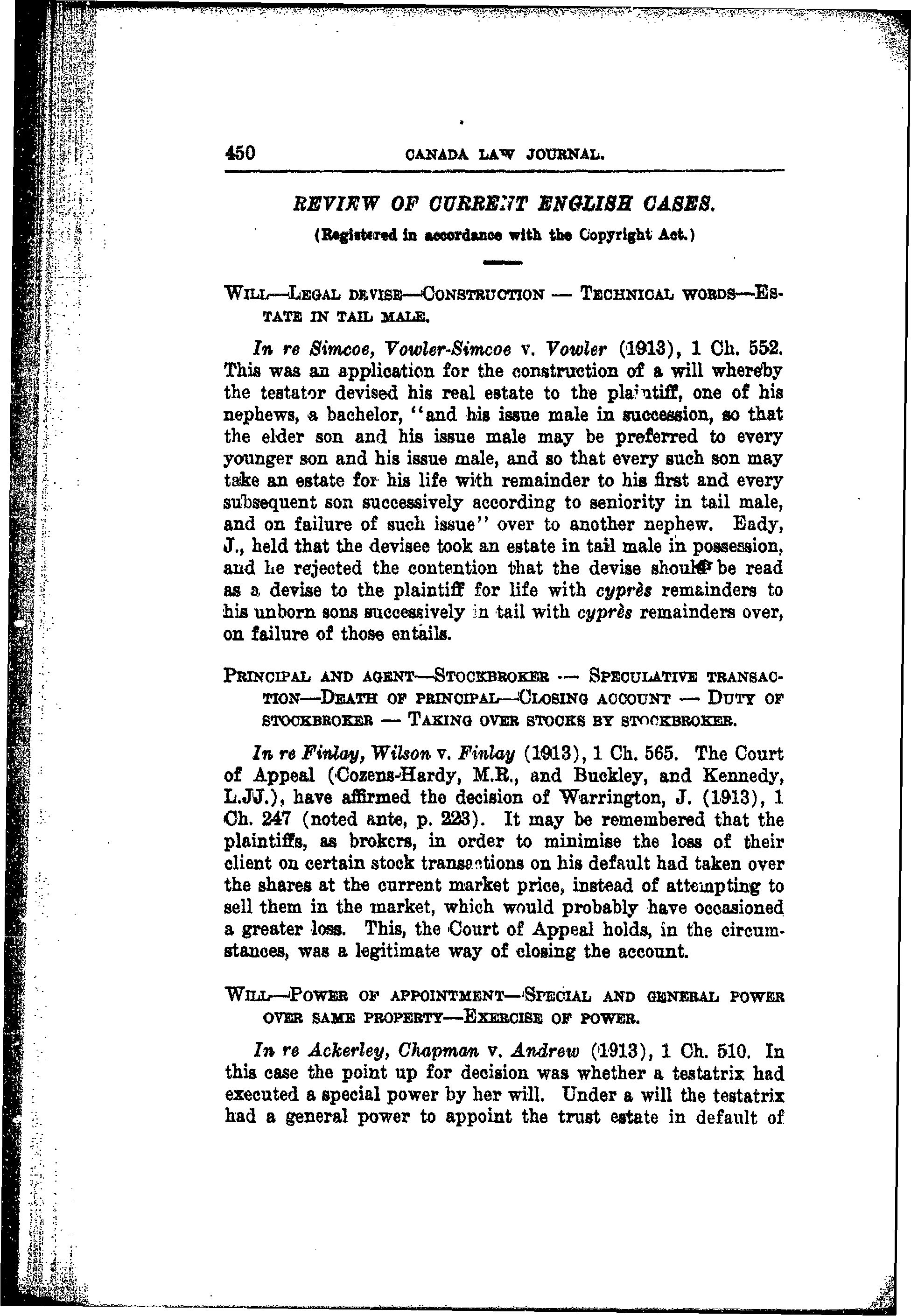 [Toronto : Canada Law Book Co., 1913]; 40 images avec recherche en texte intégral