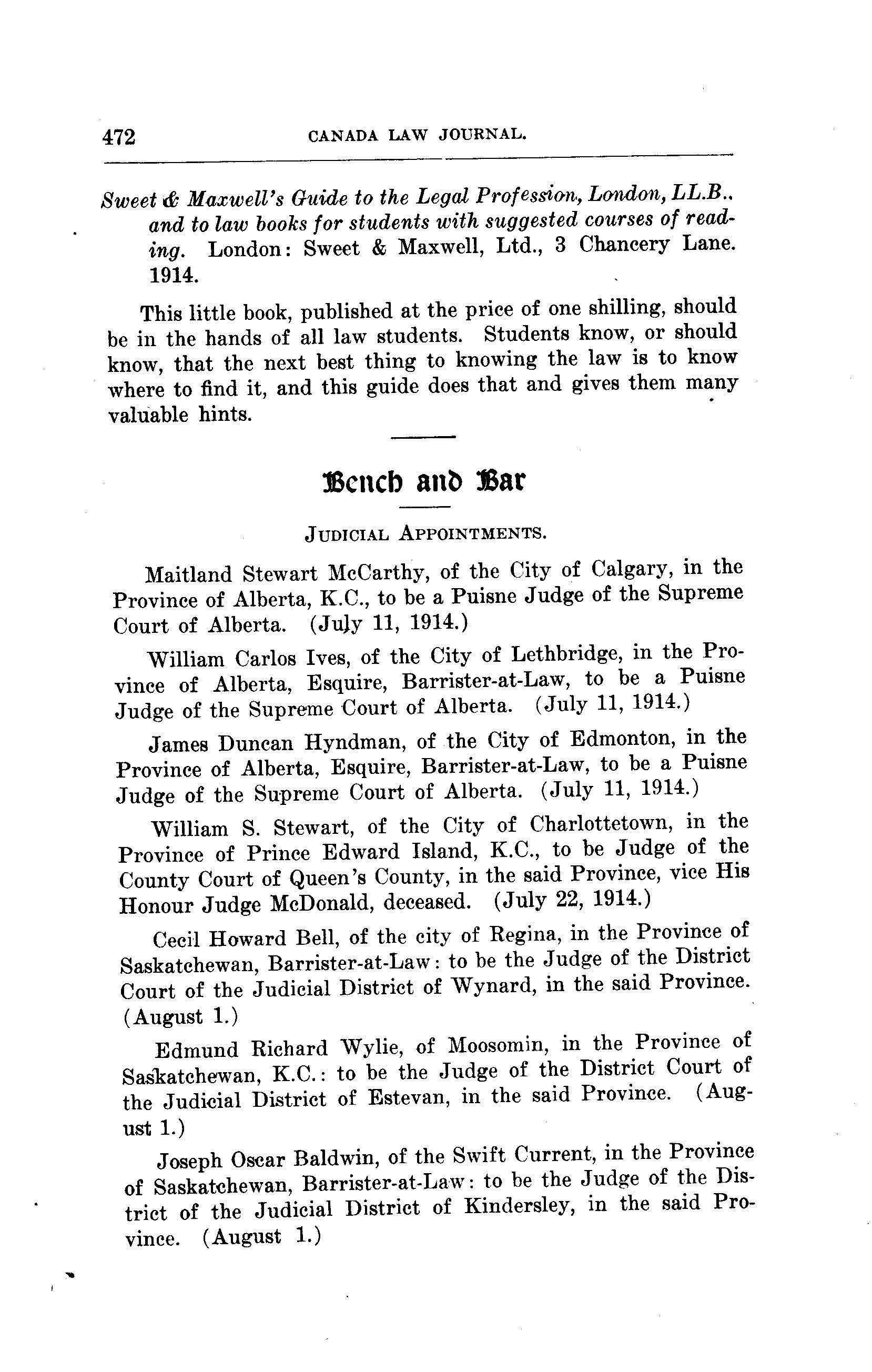 - Canada law journal [Vol. 50, no. 15/16 (Aug. 1914)]