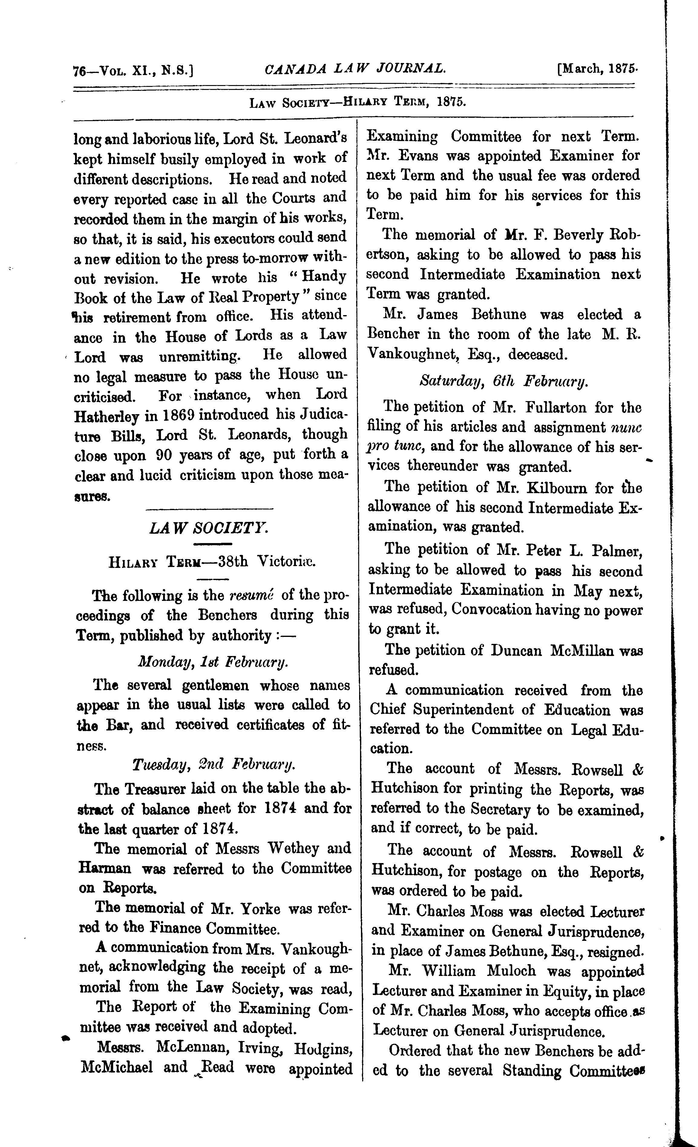 - The Canada law journal [New ser. v. 11, [no. 3] (Mar. 1875)]