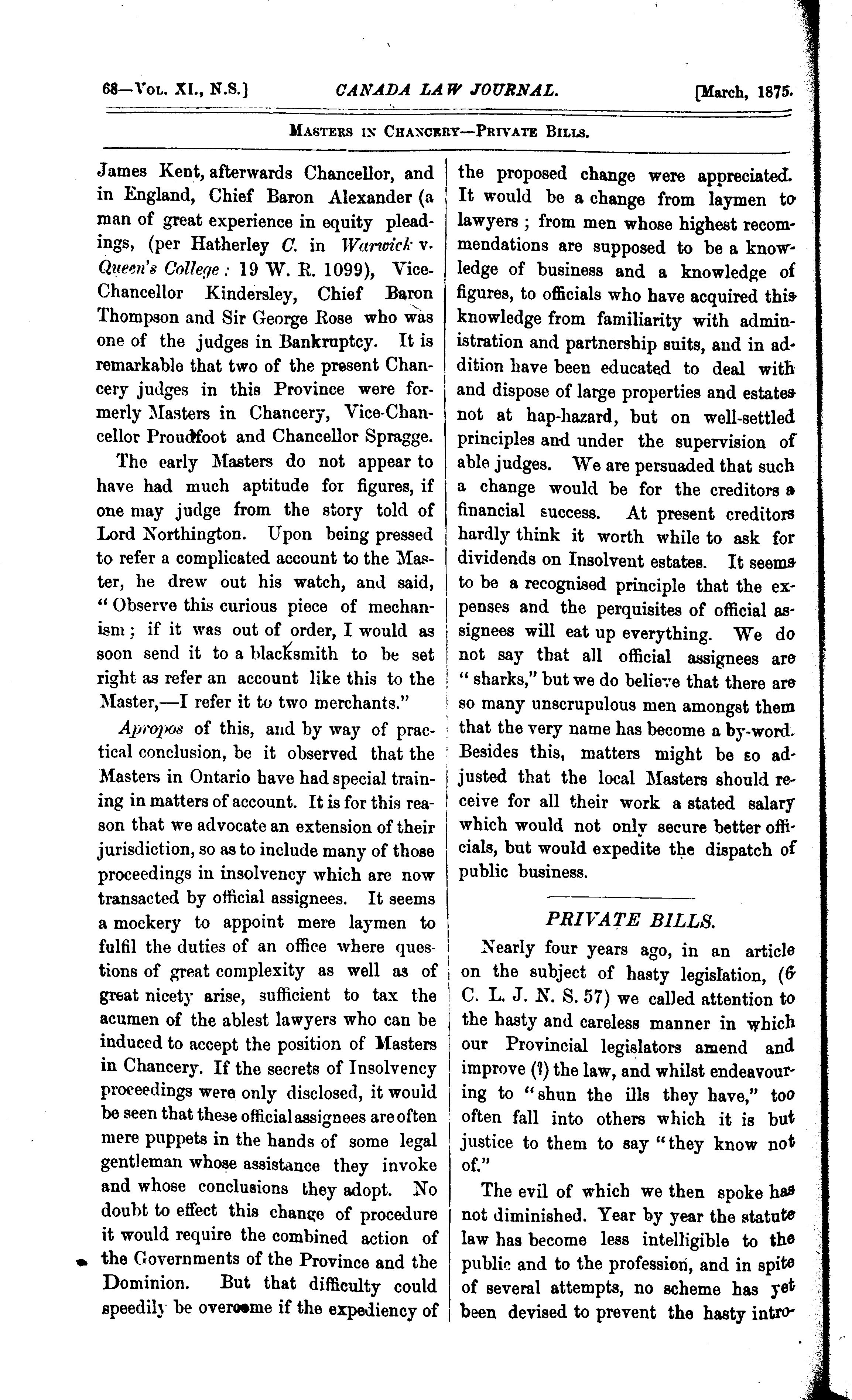 - The Canada law journal [New ser. v. 11, [no. 3] (Mar. 1875)]