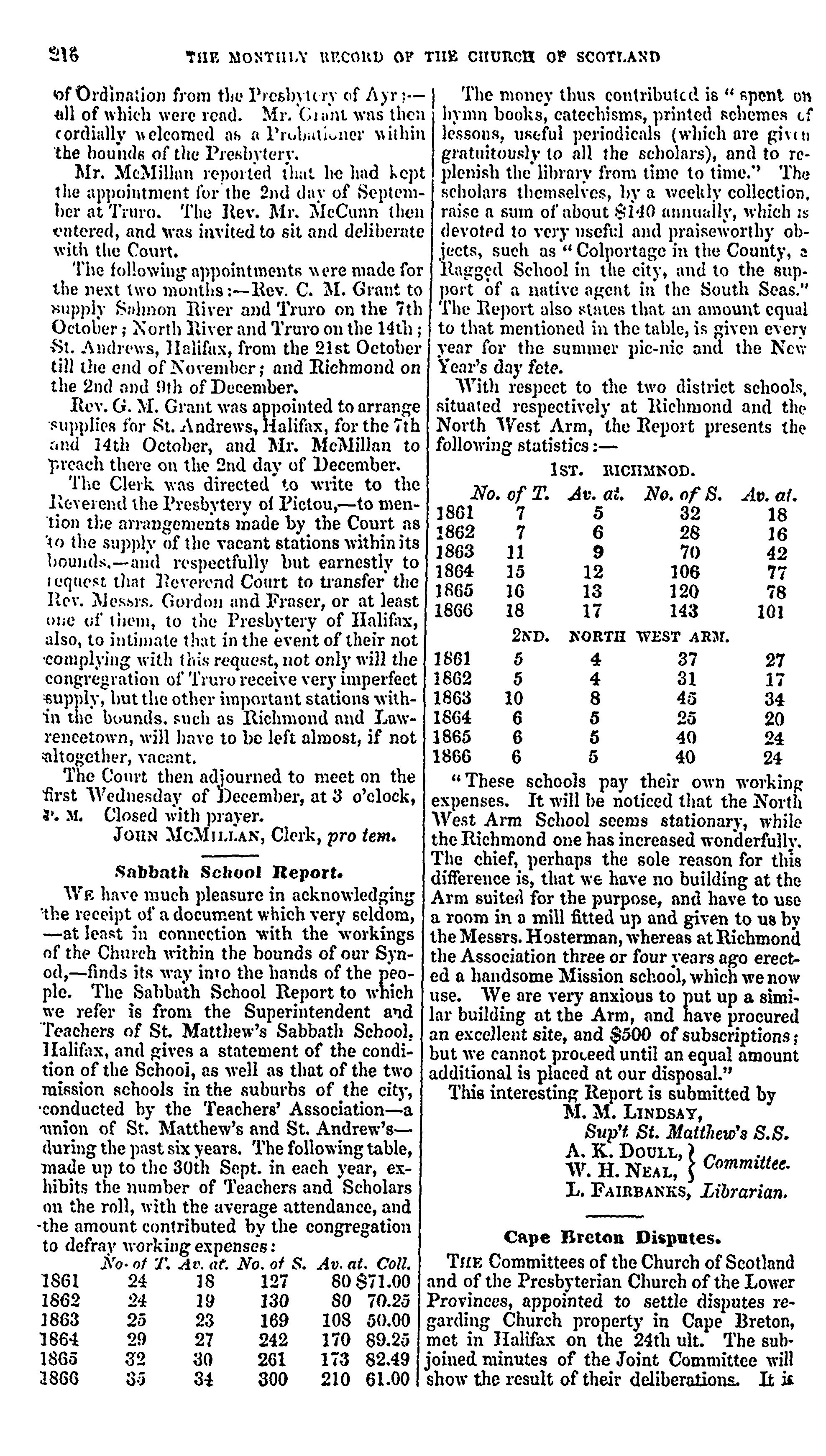 - The monthly record of the Church of Scotland in Nova Scotia and the adjoining provinces [Vol. 12, no. 11 (Nov. 1866)]