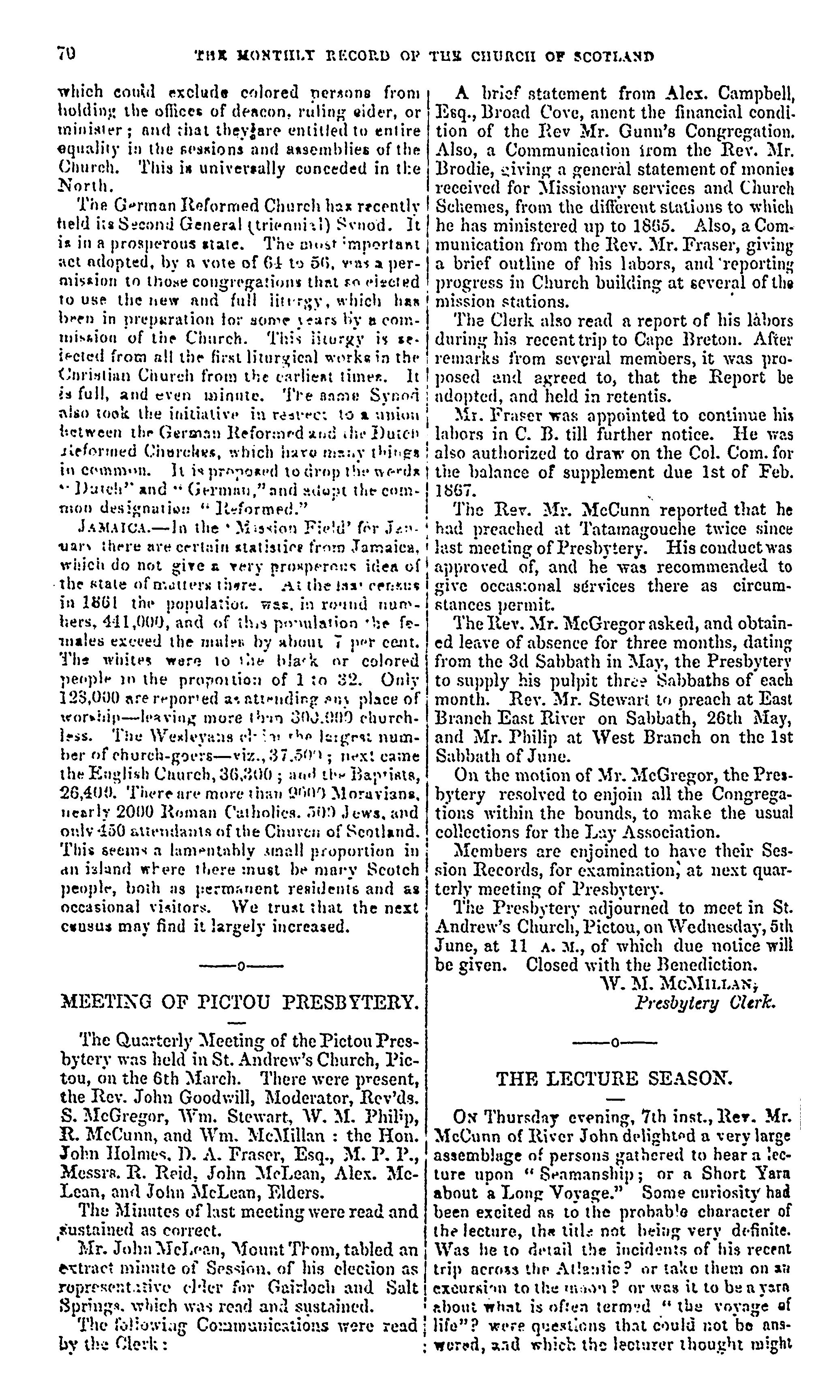 The monthly record of the Church of Scotland in Nova Scotia, New Brunswick, and the adjoining provinces [Vol. 13, no. 4 (Apr. 1867)]