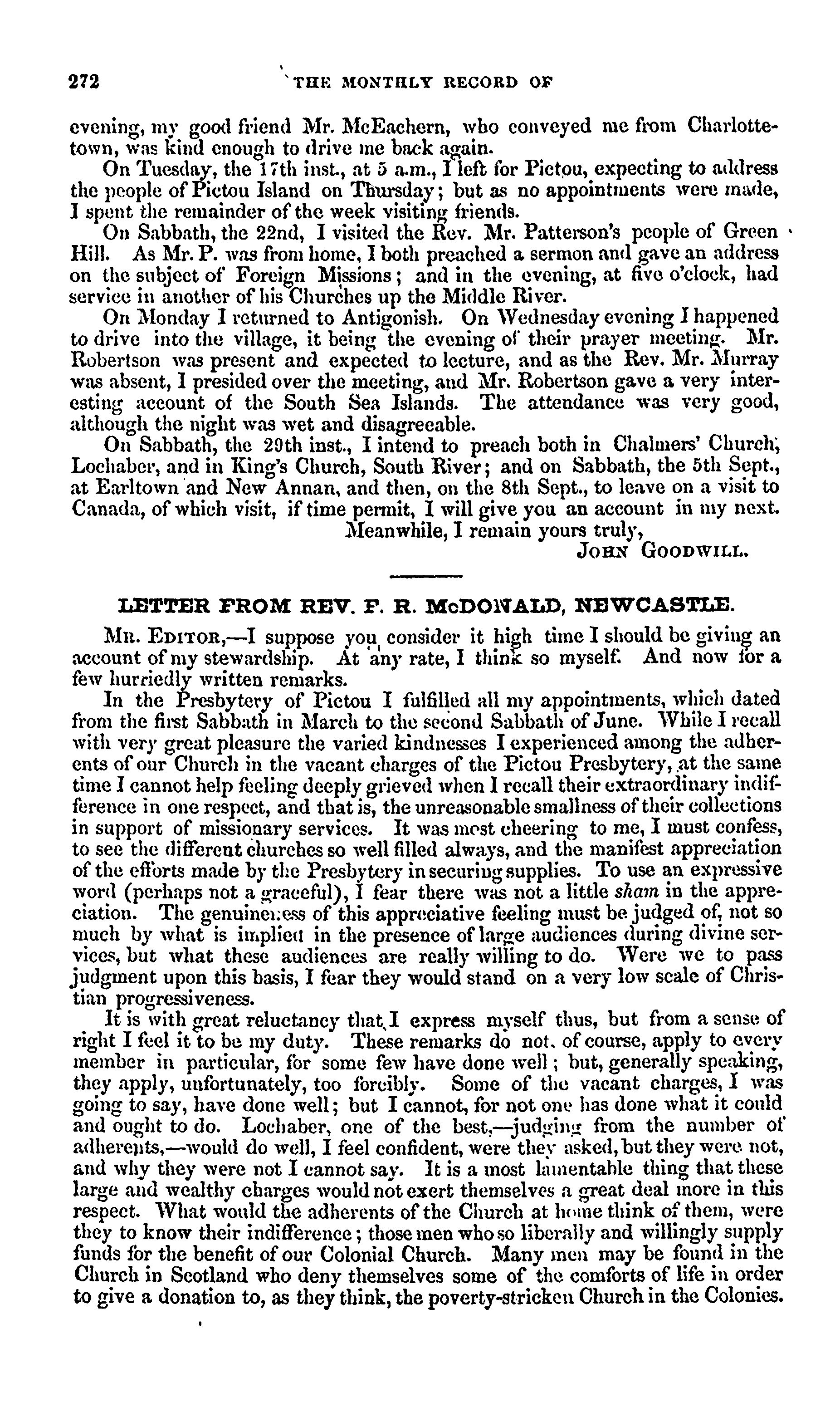 - The monthly record of the Church of Scotland in Nova Scotia, New Brunswick, & adjoining provinces [Vol. 15, no. 10 (Oct. 1869)]