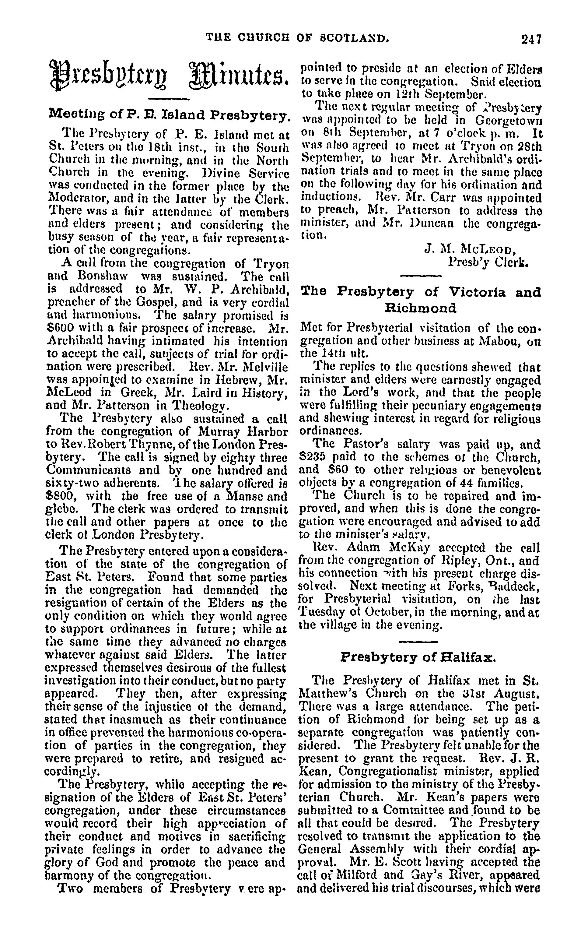 - The monthly record of the Church of Scotland in Nova Scotia, New Brunswick, & adjoining provinces [Vol. 21, no. 10 (Oct. 1875)]