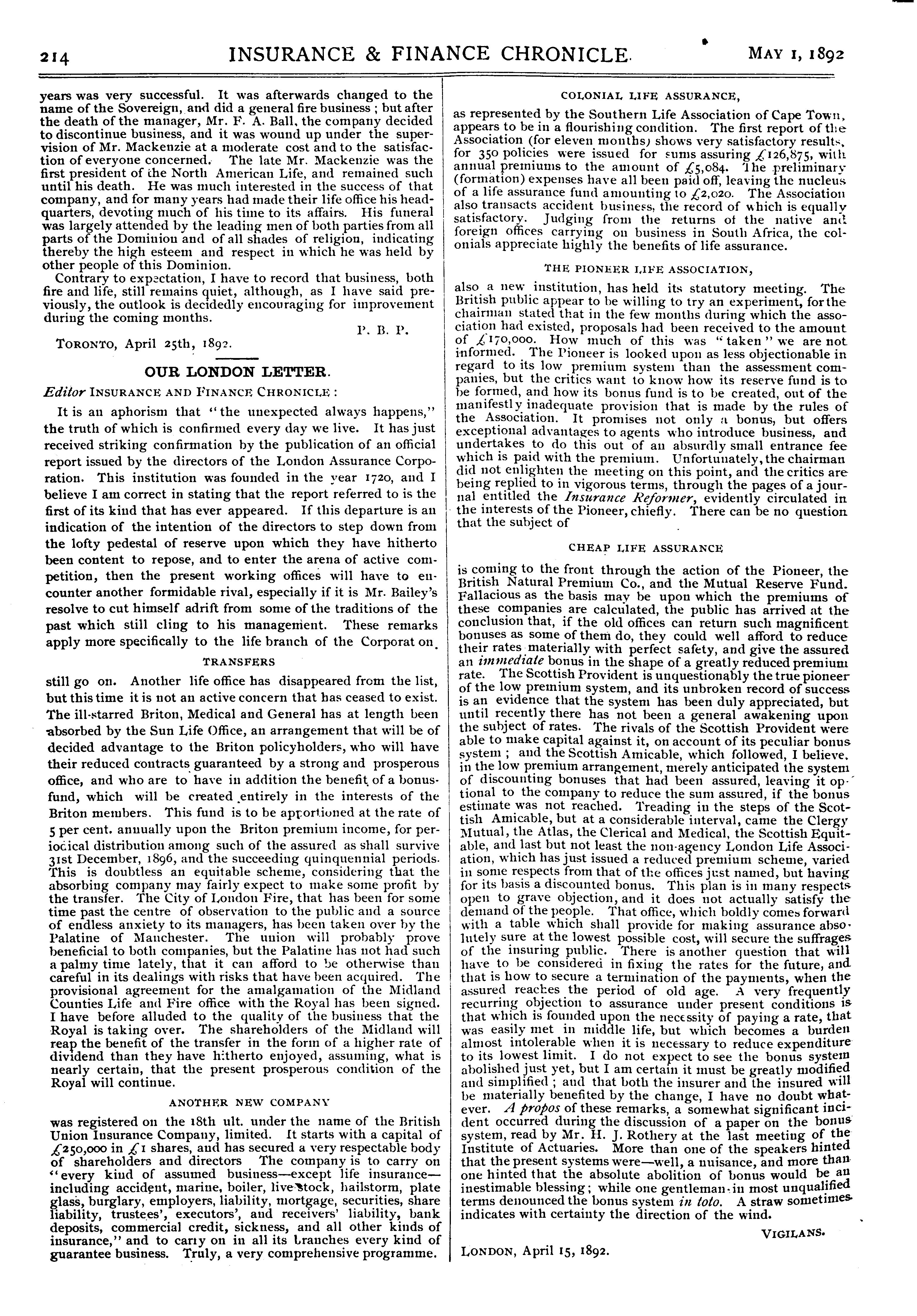 - Insurance and finance chronicle [Vol. 12, no. 9 (May 1, 1892)]