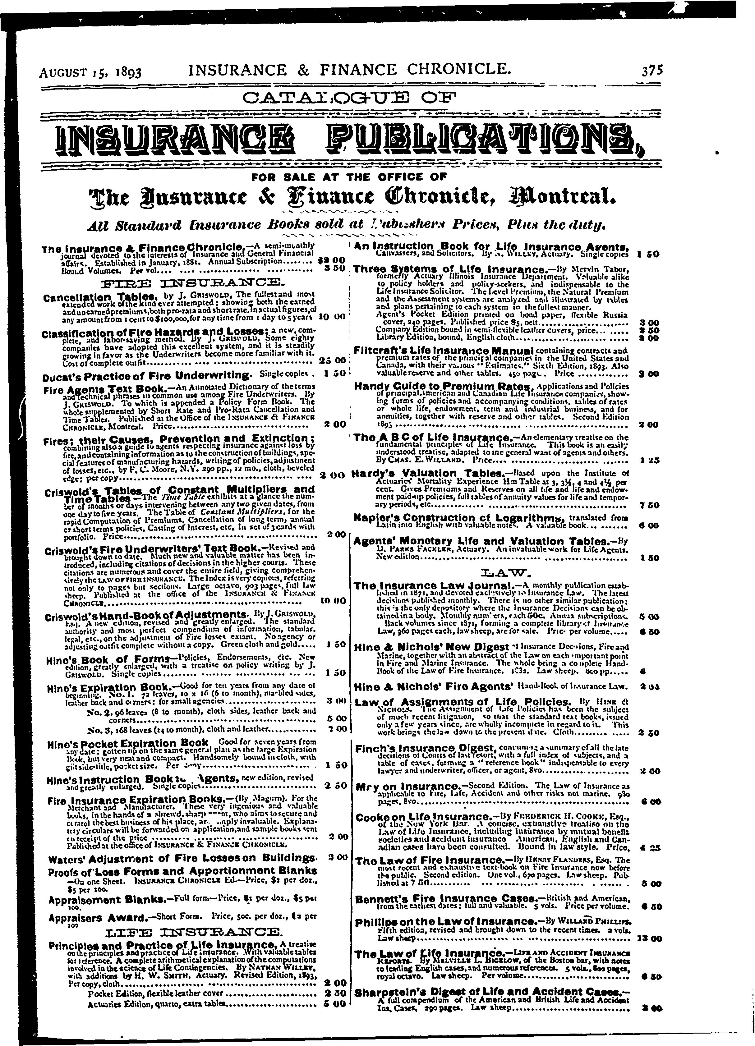 Insurance and finance chronicle [Vol. 13, no. 16 (Aug. 15, 1893)]