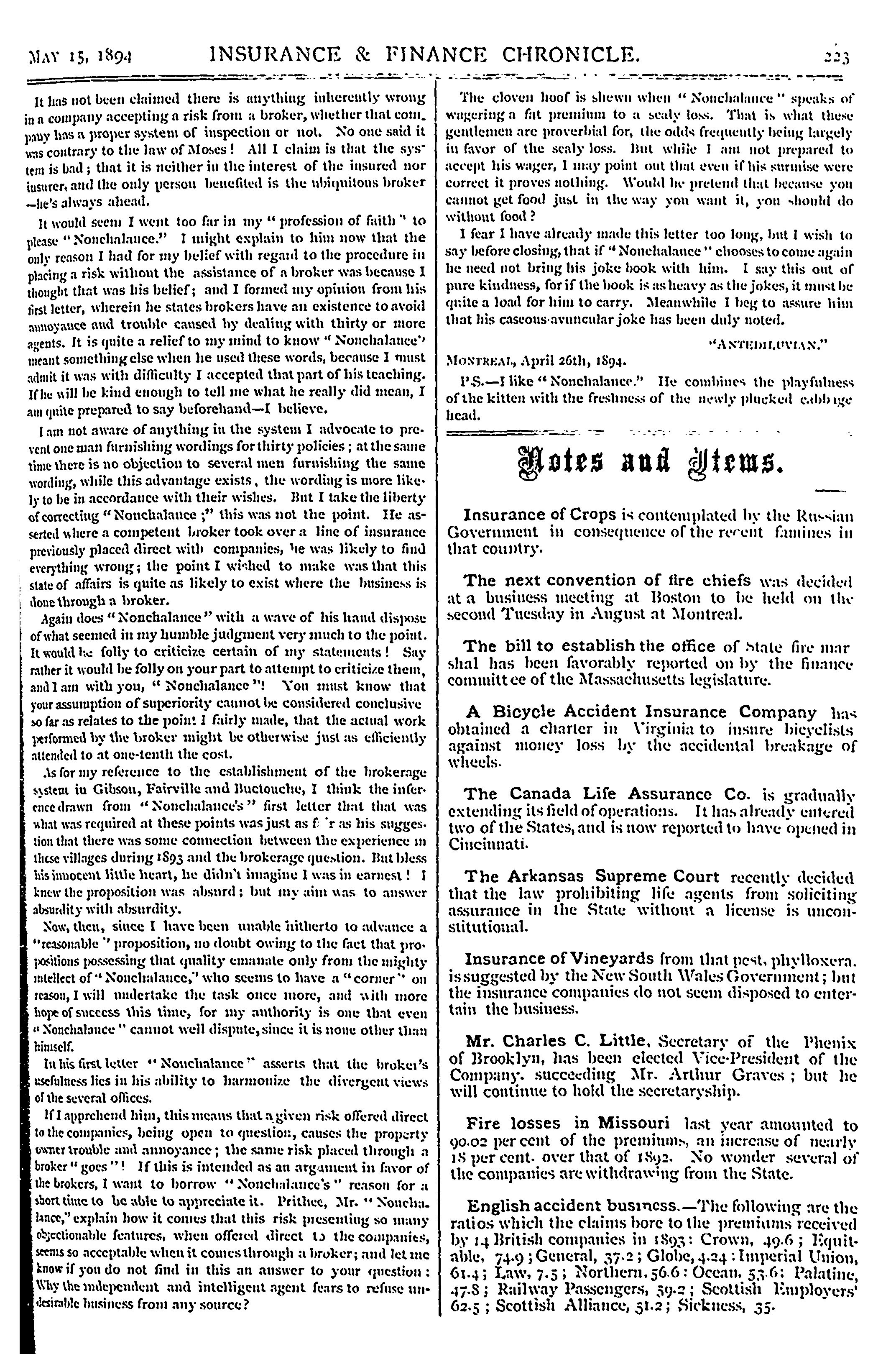 - Insurance and finance chronicle [Vol. 14, no. 10 (May 15, 1894)]