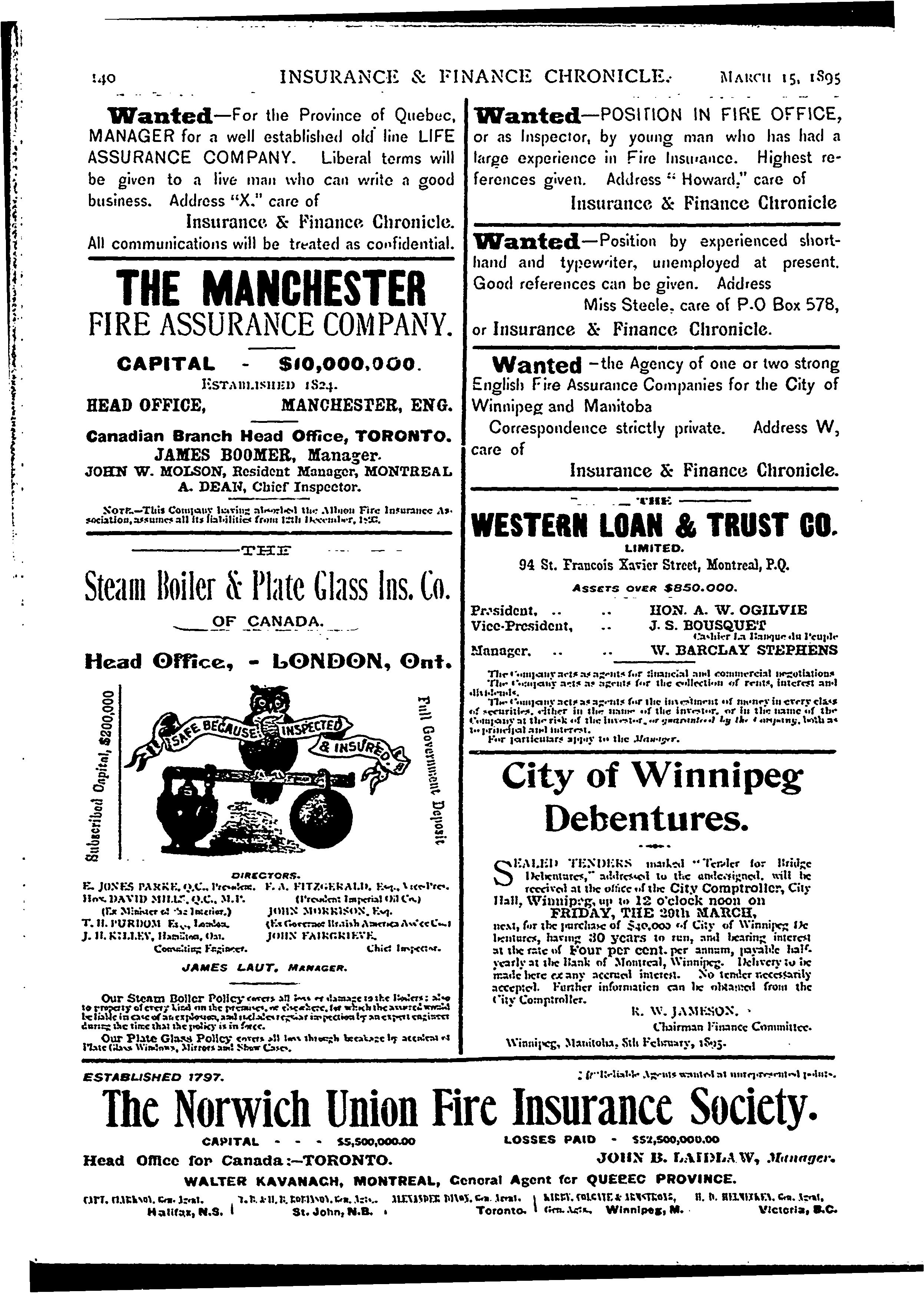 Insurance and finance chronicle [Vol. 15, no. 6 (Mar. 15, 1895)]