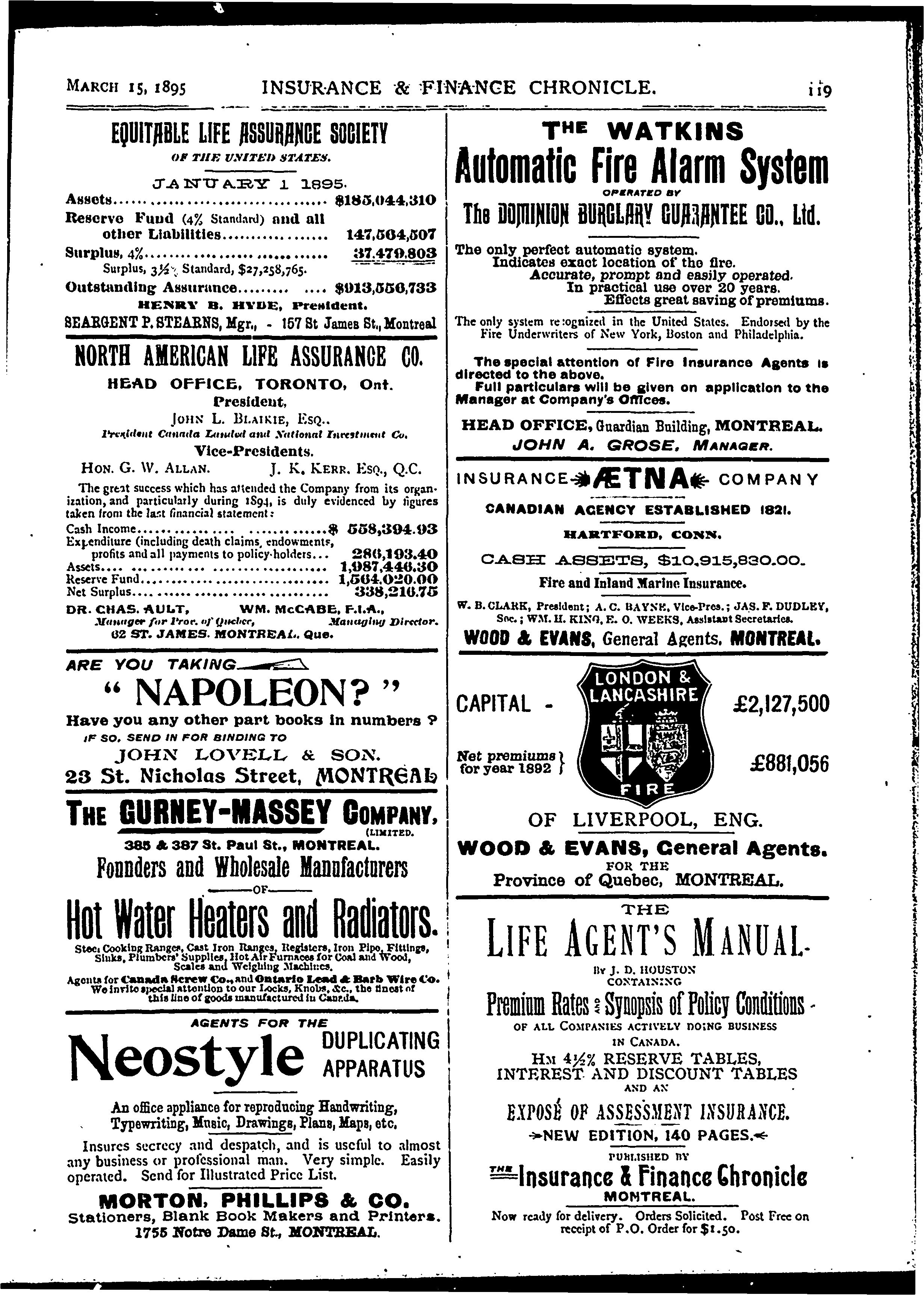 Insurance and finance chronicle [Vol. 15, no. 6 (Mar. 15, 1895)]