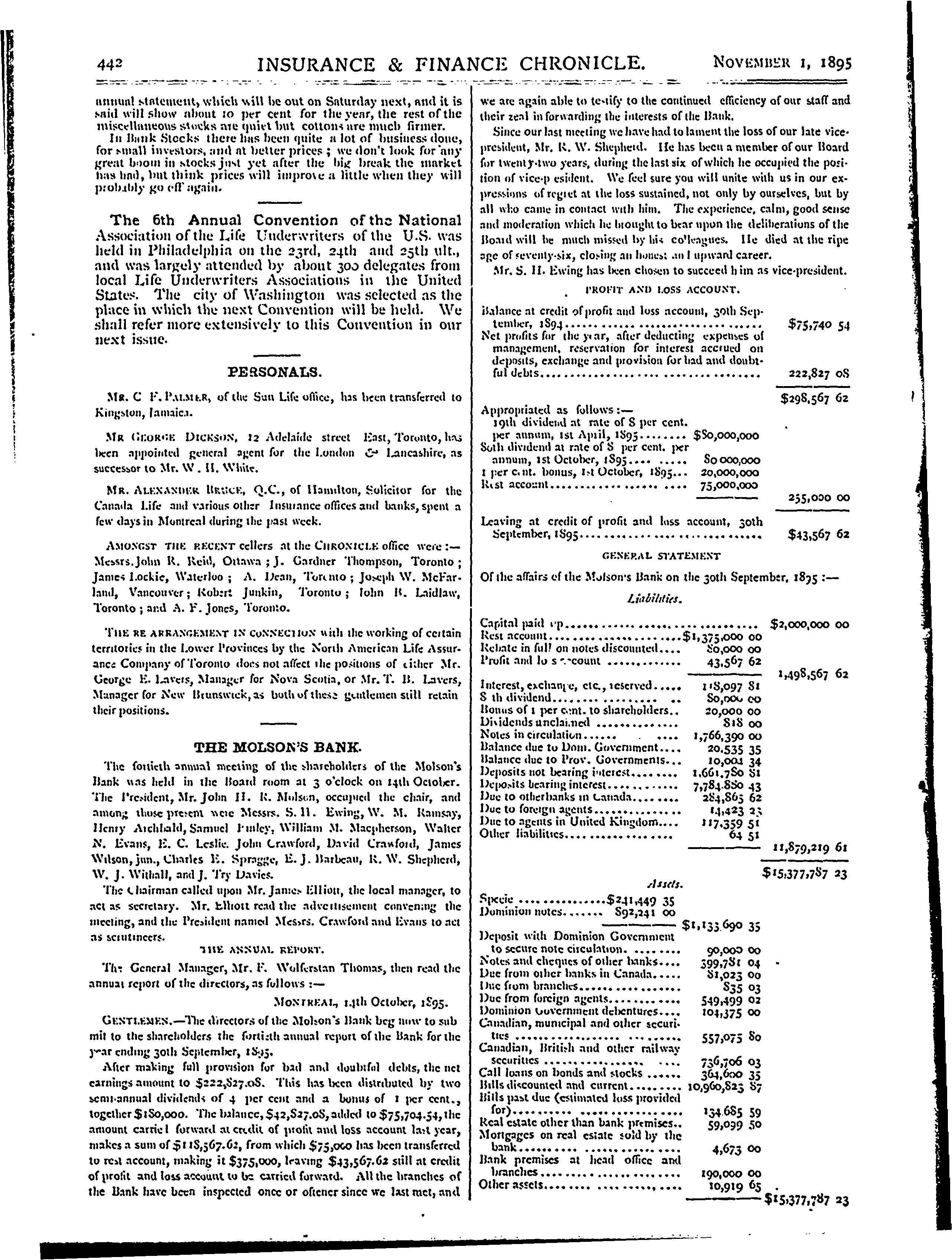 - Insurance and finance chronicle [Vol. 15, no. 21 (Nov. 1, 1895)]