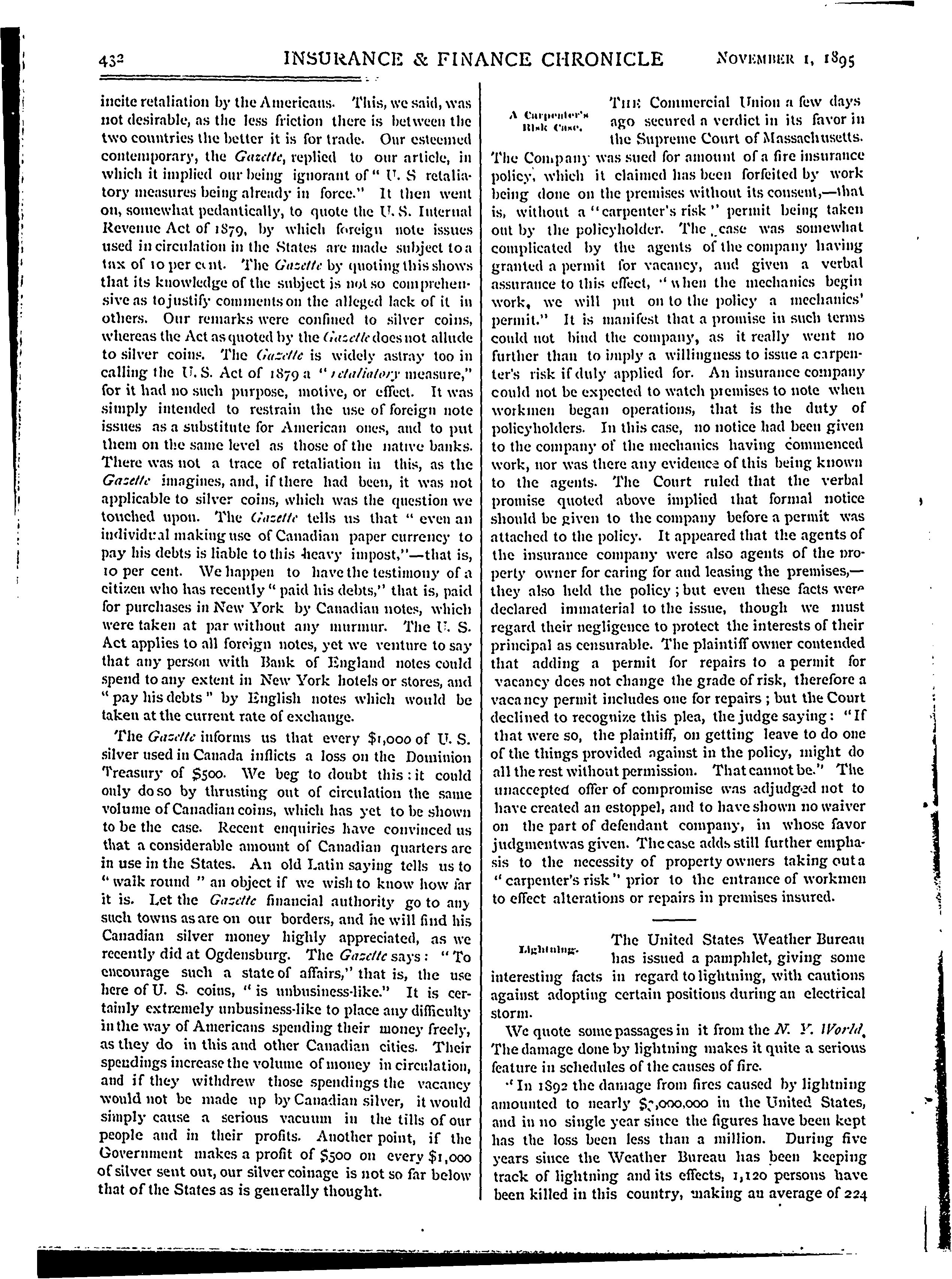 - Insurance and finance chronicle [Vol. 15, no. 21 (Nov. 1, 1895)]