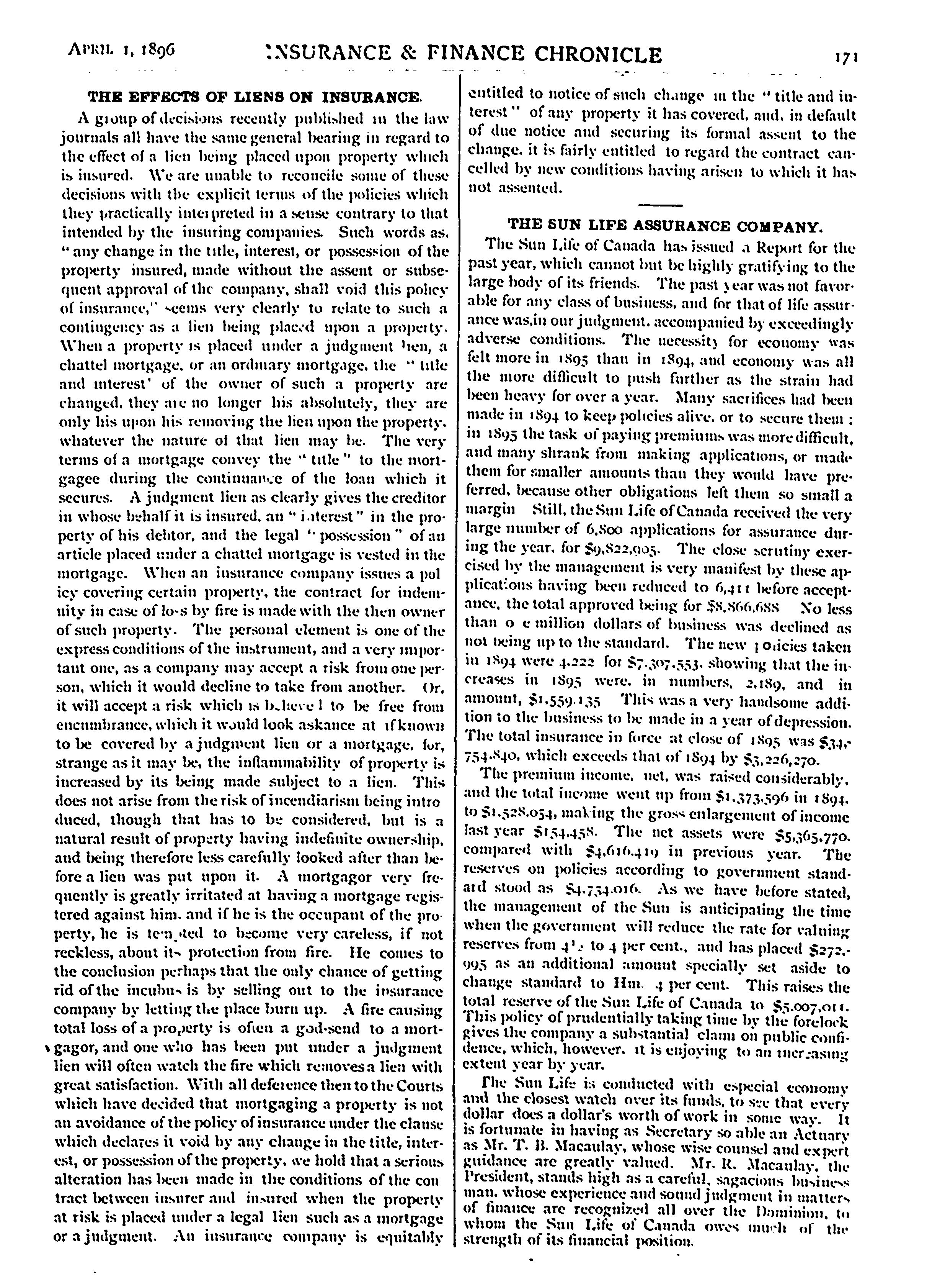 - The insurance & finance chronicle [Vol. 16, no. 7 (Apr. 1, 1896)]