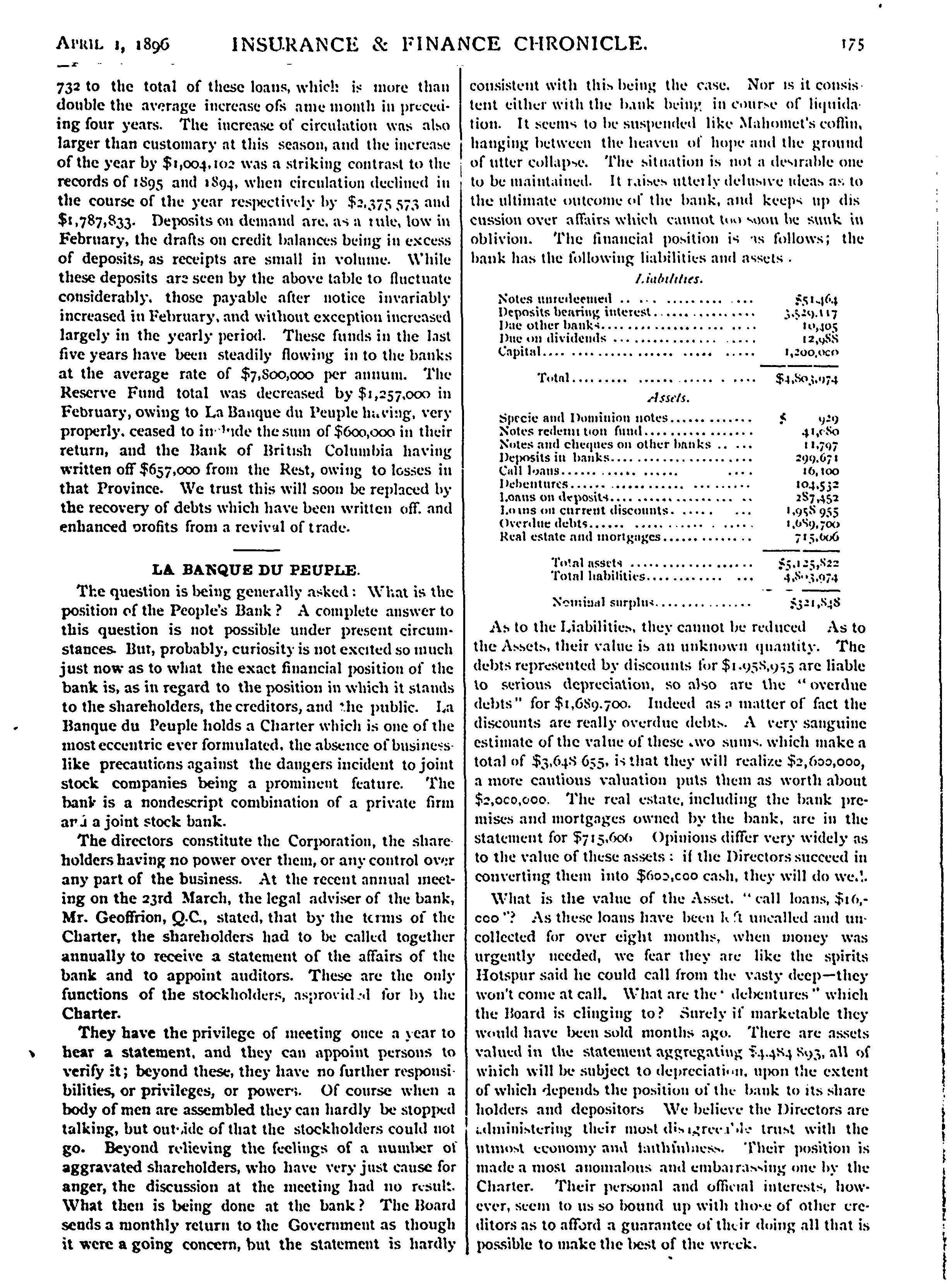 - The insurance & finance chronicle [Vol. 16, no. 7 (Apr. 1, 1896)]