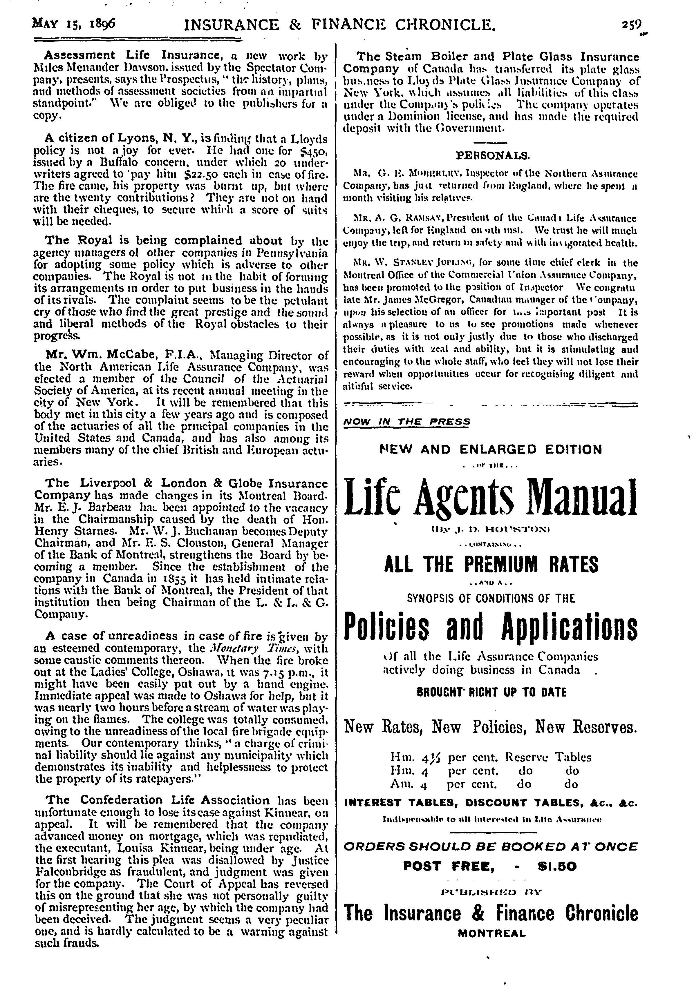 - The insurance & finance chronicle [Vol. 16, no. 10 (May 15, 1896)]