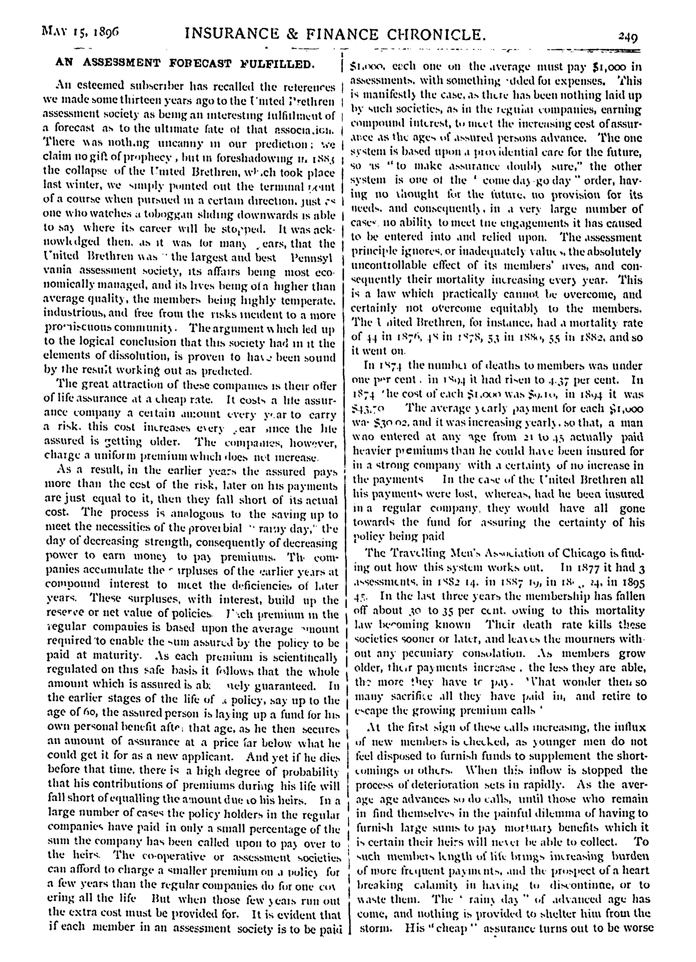 - The insurance & finance chronicle [Vol. 16, no. 10 (May 15, 1896)]