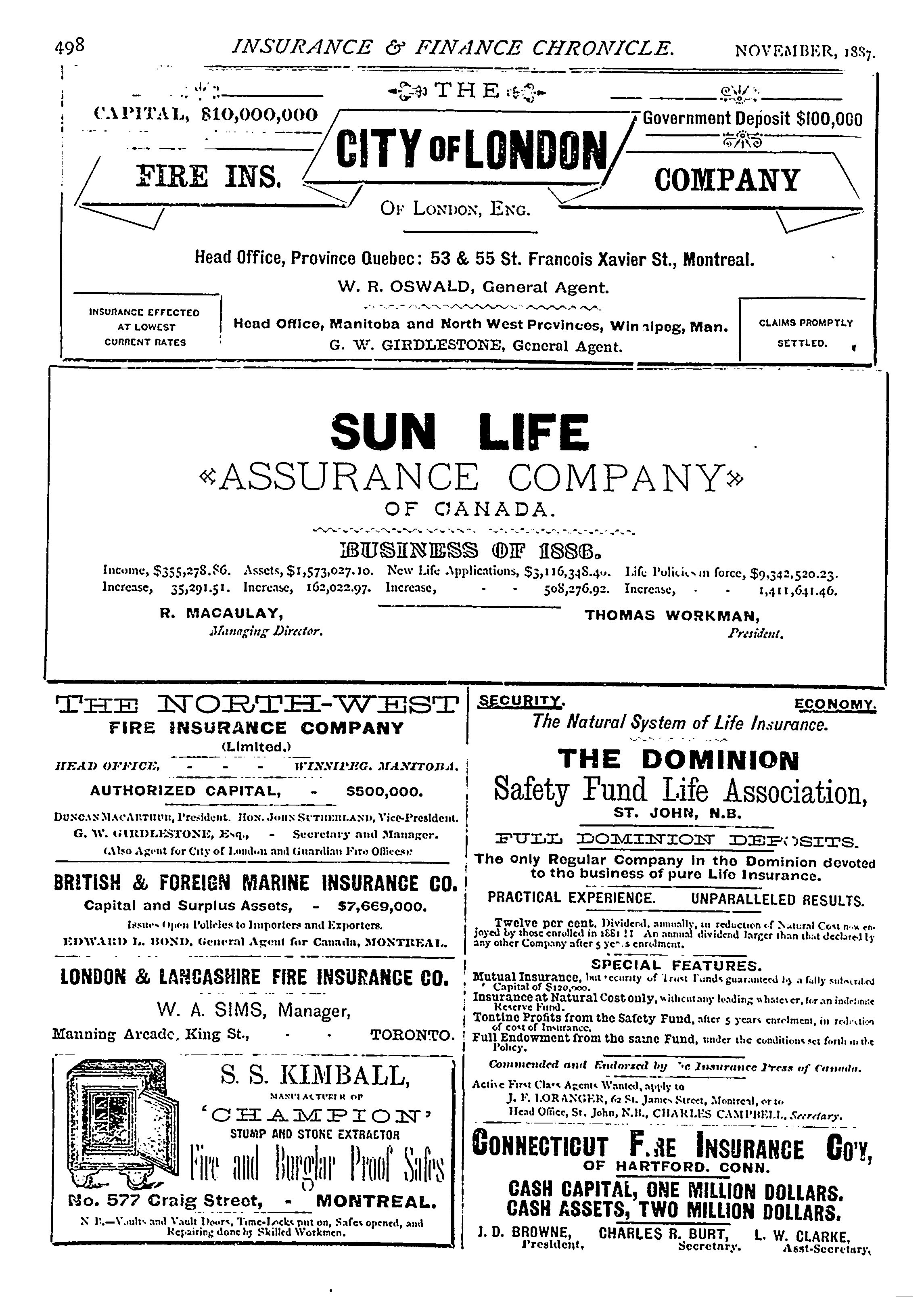 Insurance and finance chronicle [Vol. 7, no. 11 (Nov. 1887)]