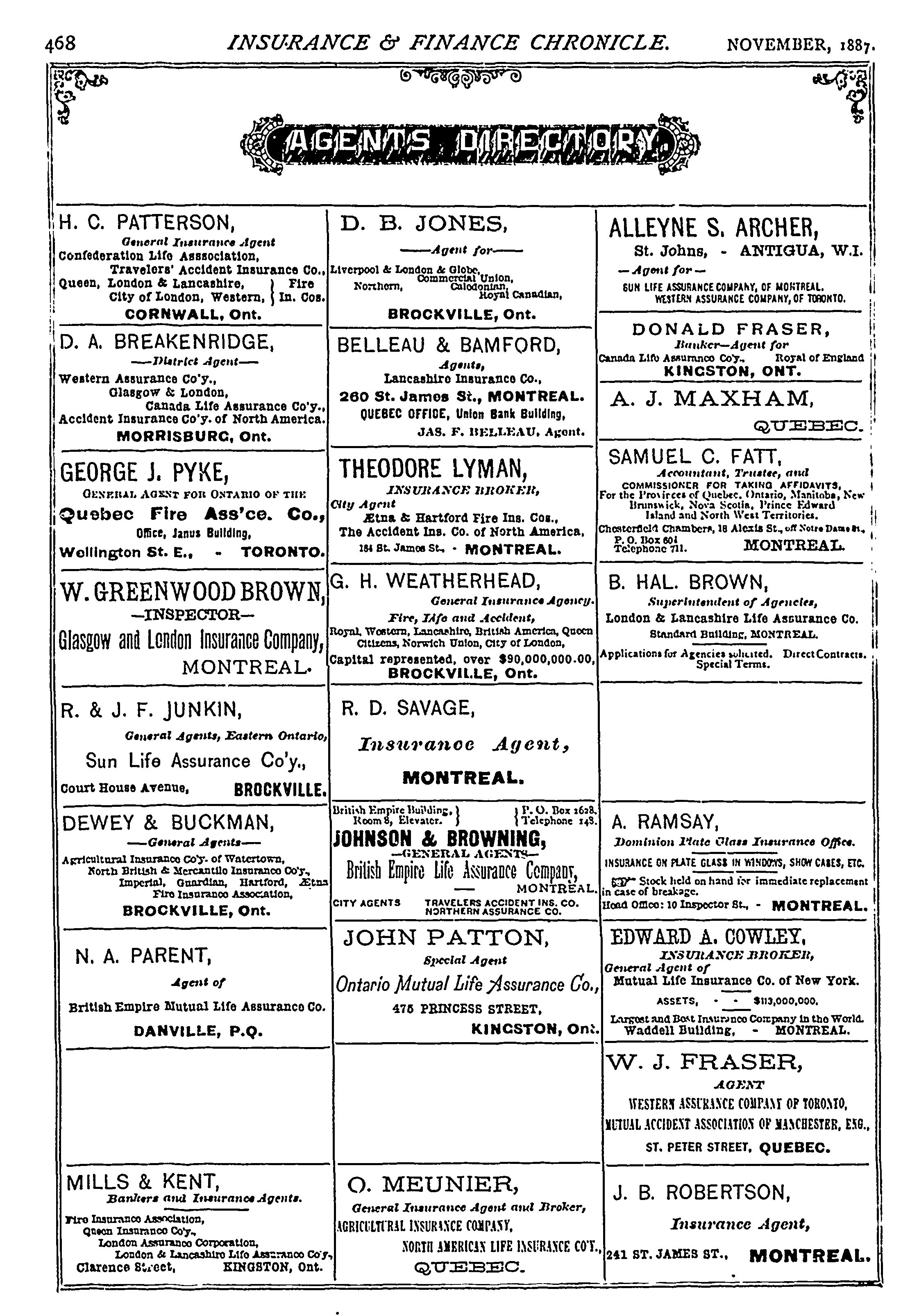 Insurance and finance chronicle [Vol. 7, no. 11 (Nov. 1887)]