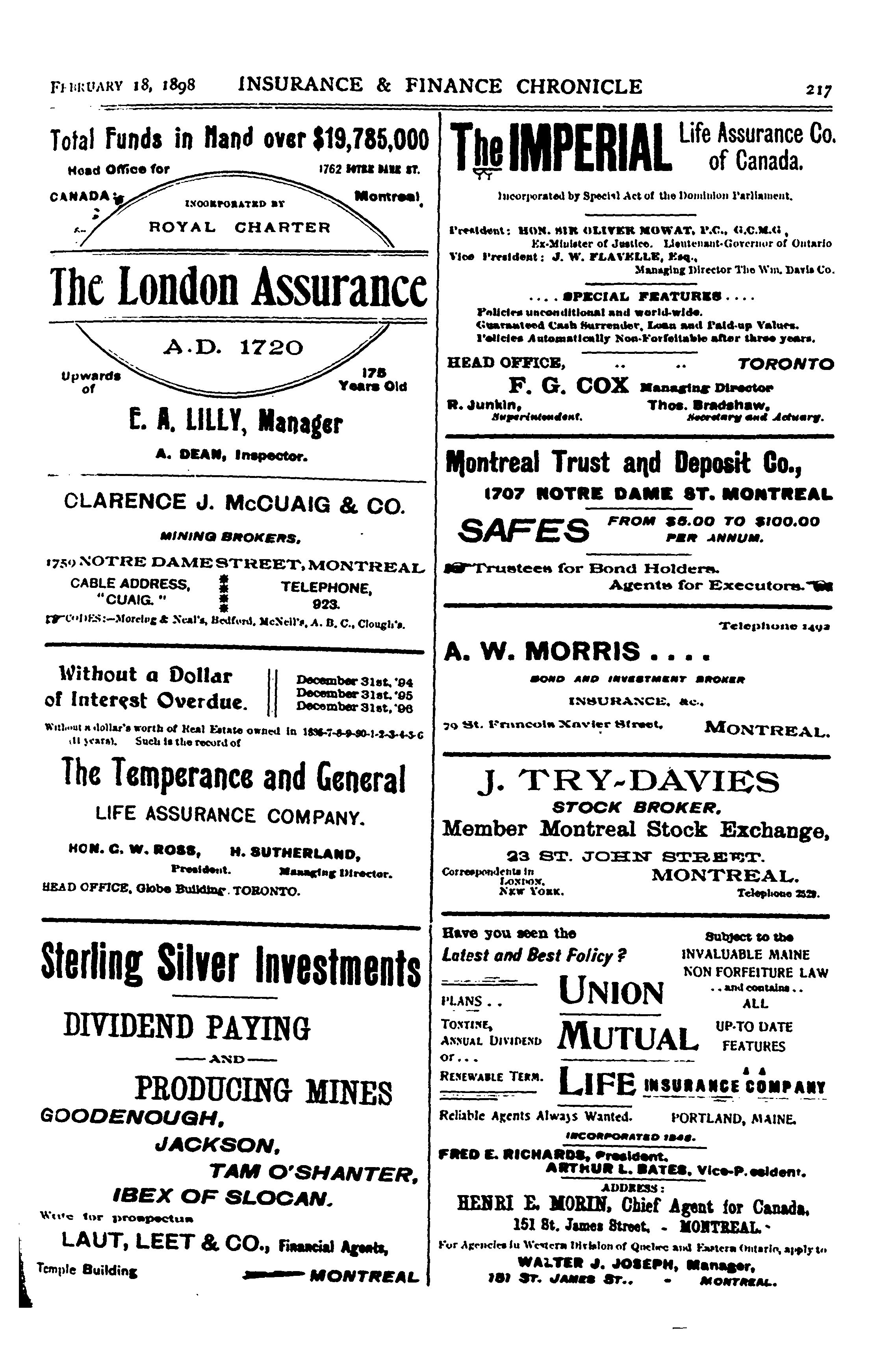 Insurance and finance chronicle : [Vol. 18, no. 7 (Feb. 18, 1898)]