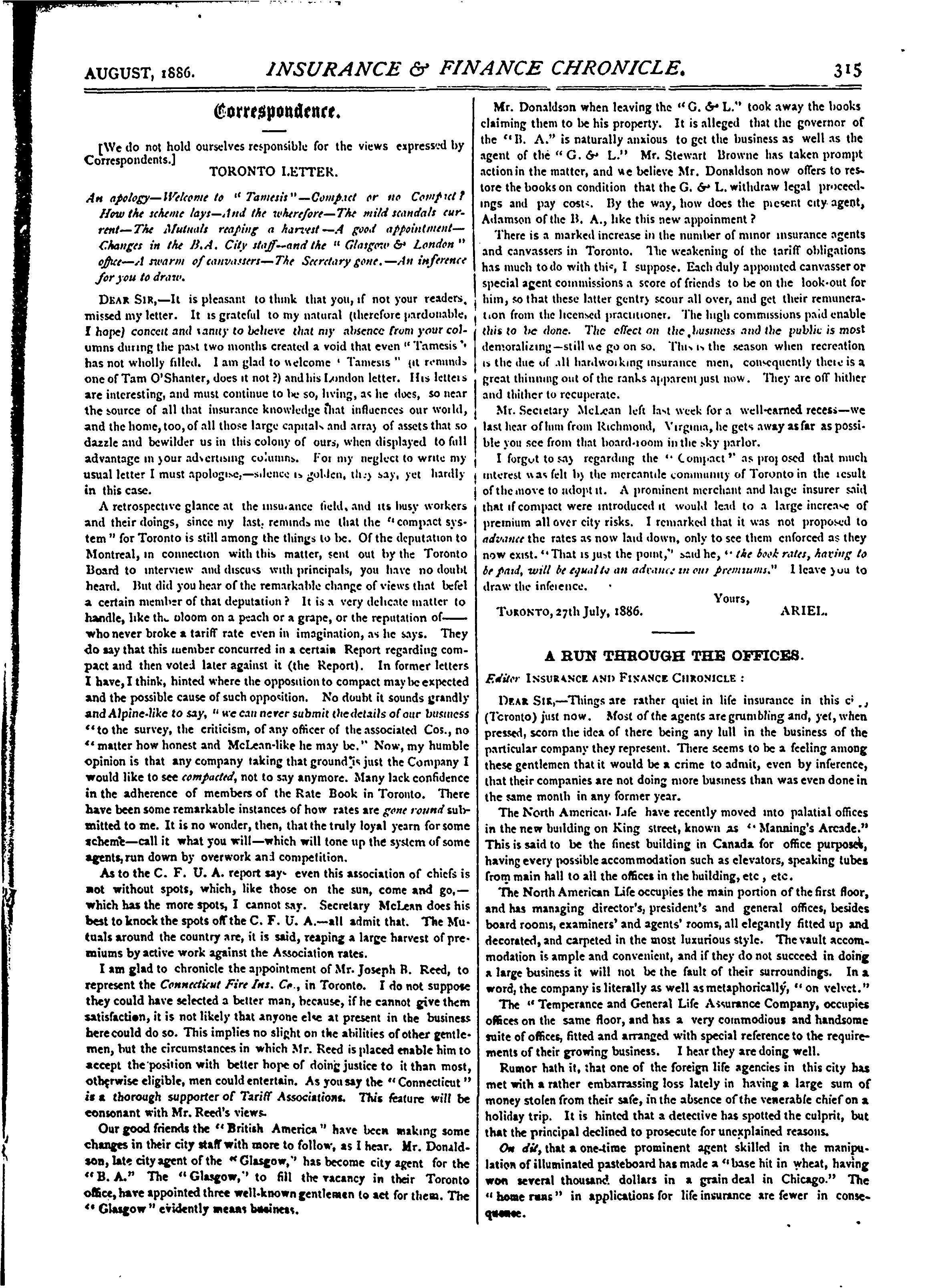 Insurance and finance chronicle : [Vol. 6, no. 8 (Aug. 1886)]