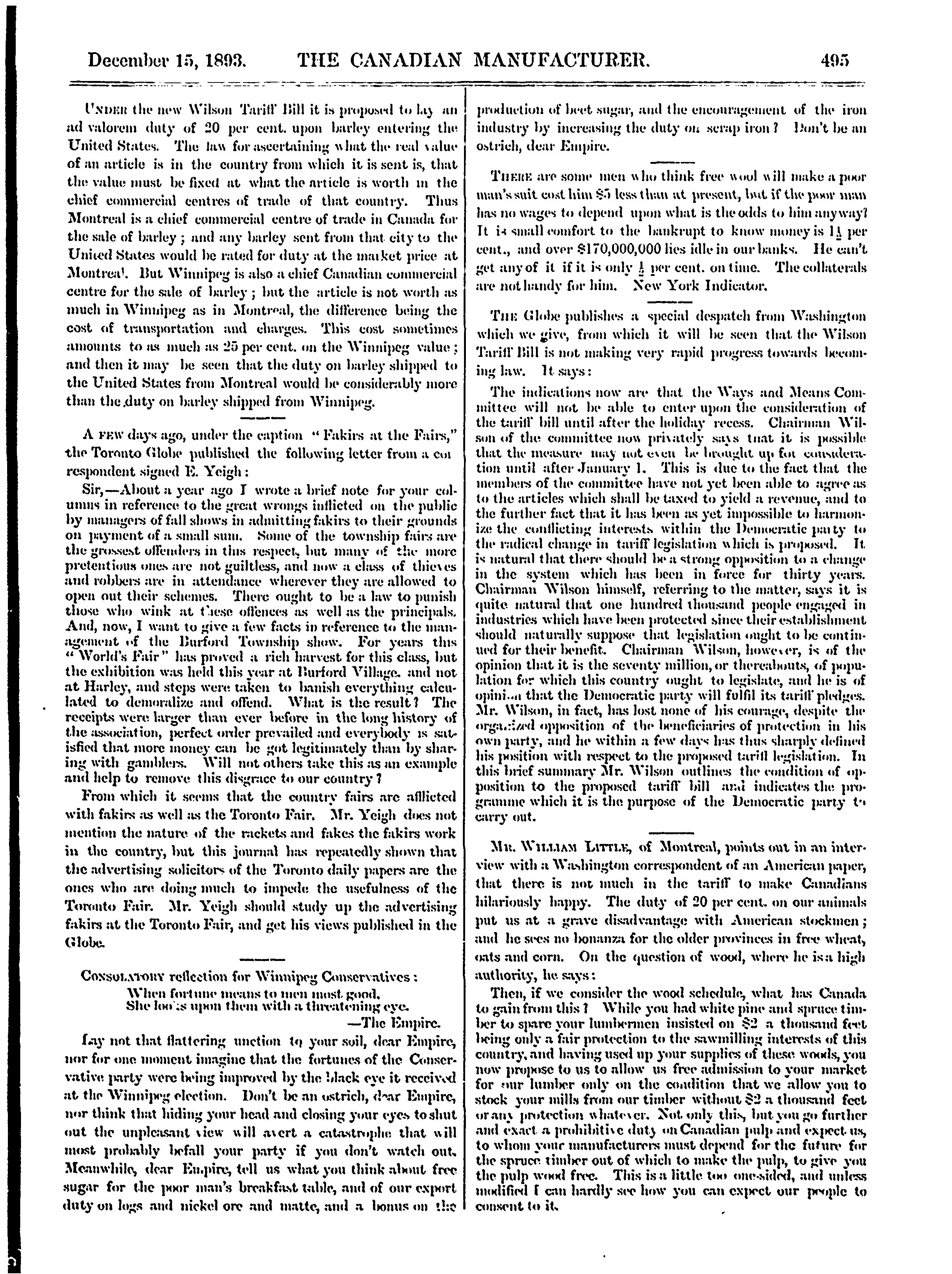 Canadian manufacturer and industrial world [Vol. 25, no. 12 (Dec. 15, 1893)]