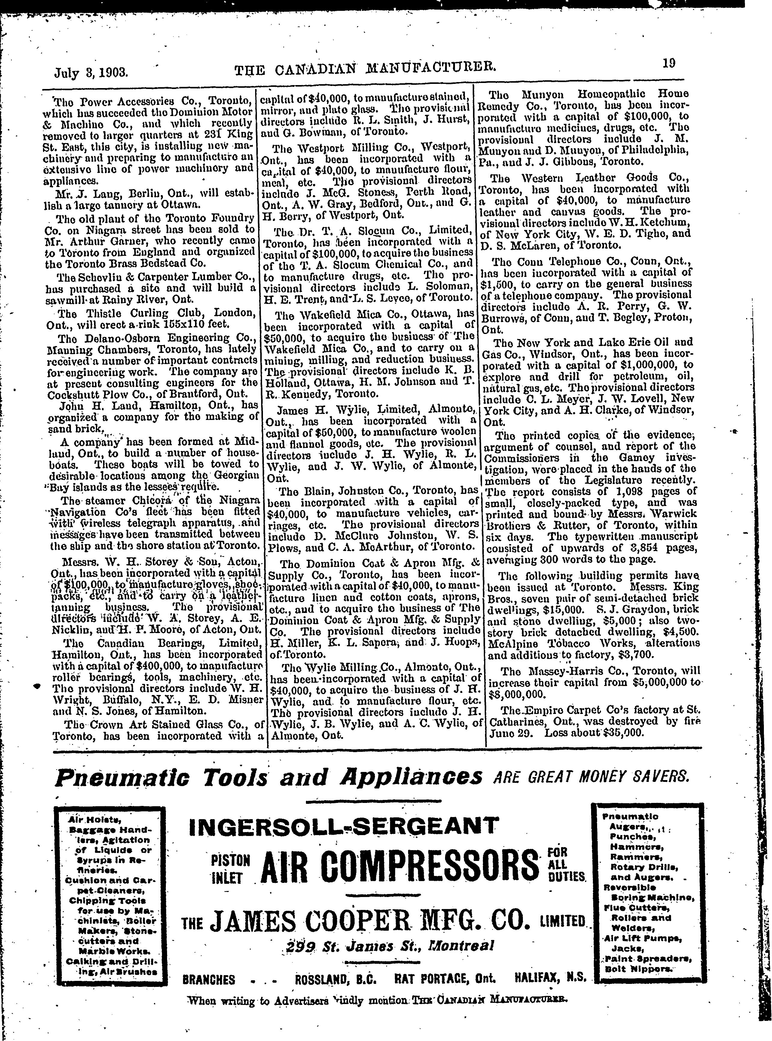 - Canadian manufacturer and industrial world [Vol. 47, no. 1 (July 3, 1903)]