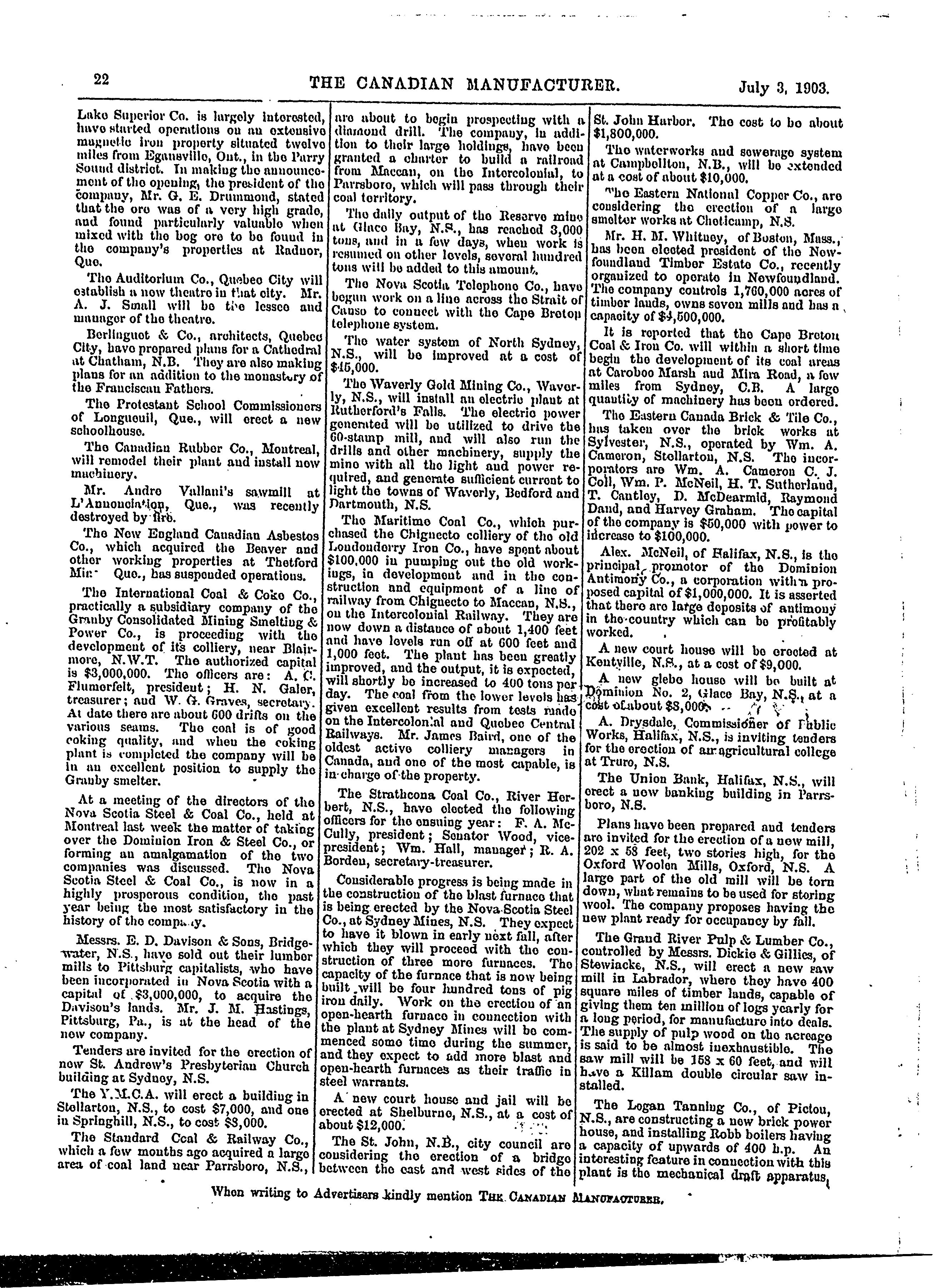 - Canadian manufacturer and industrial world [Vol. 47, no. 1 (July 3, 1903)]