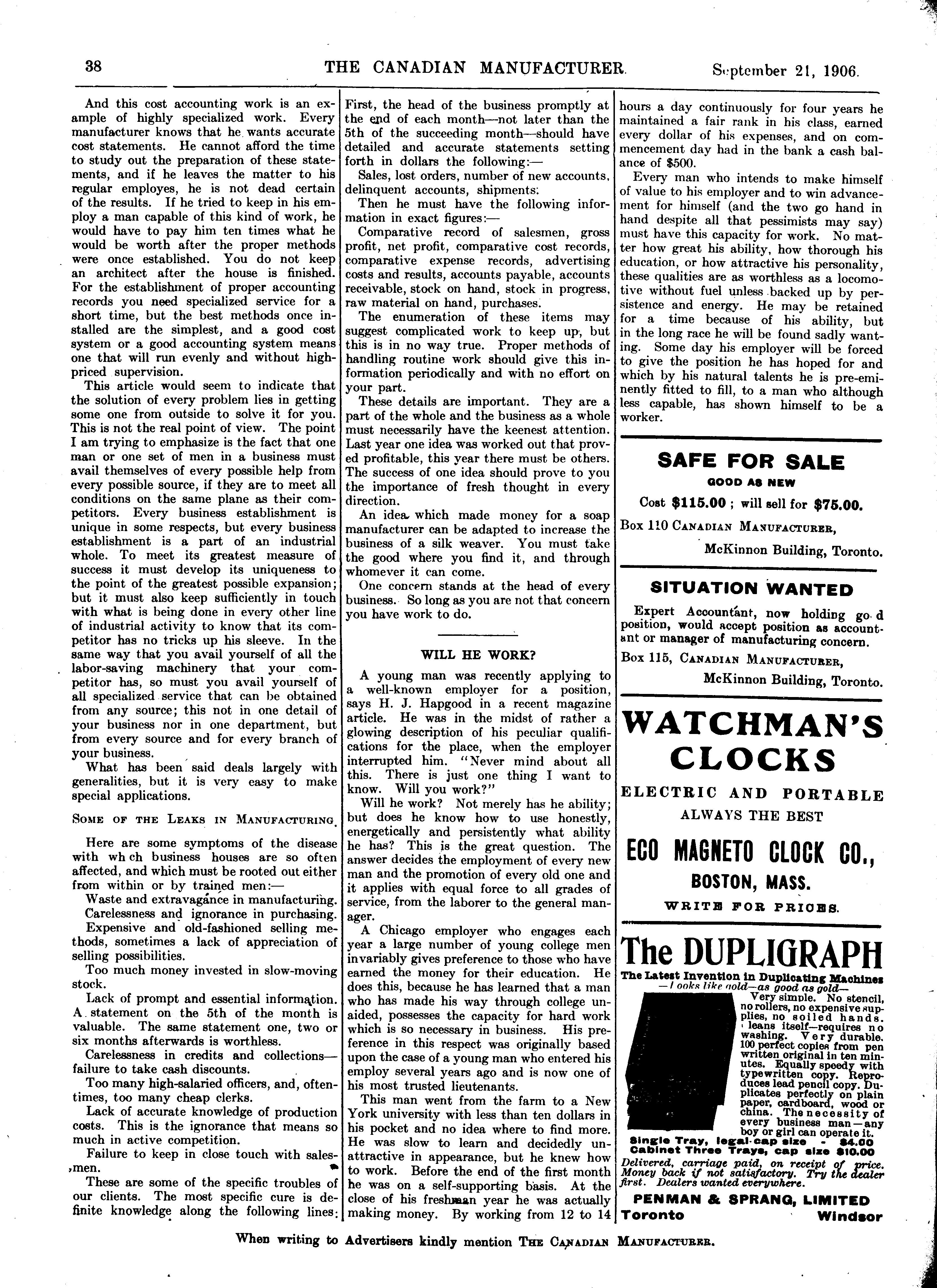 - Canadian manufacturer and industrial world [Vol. 53, no. 6 (Sept. 21, 1906)]