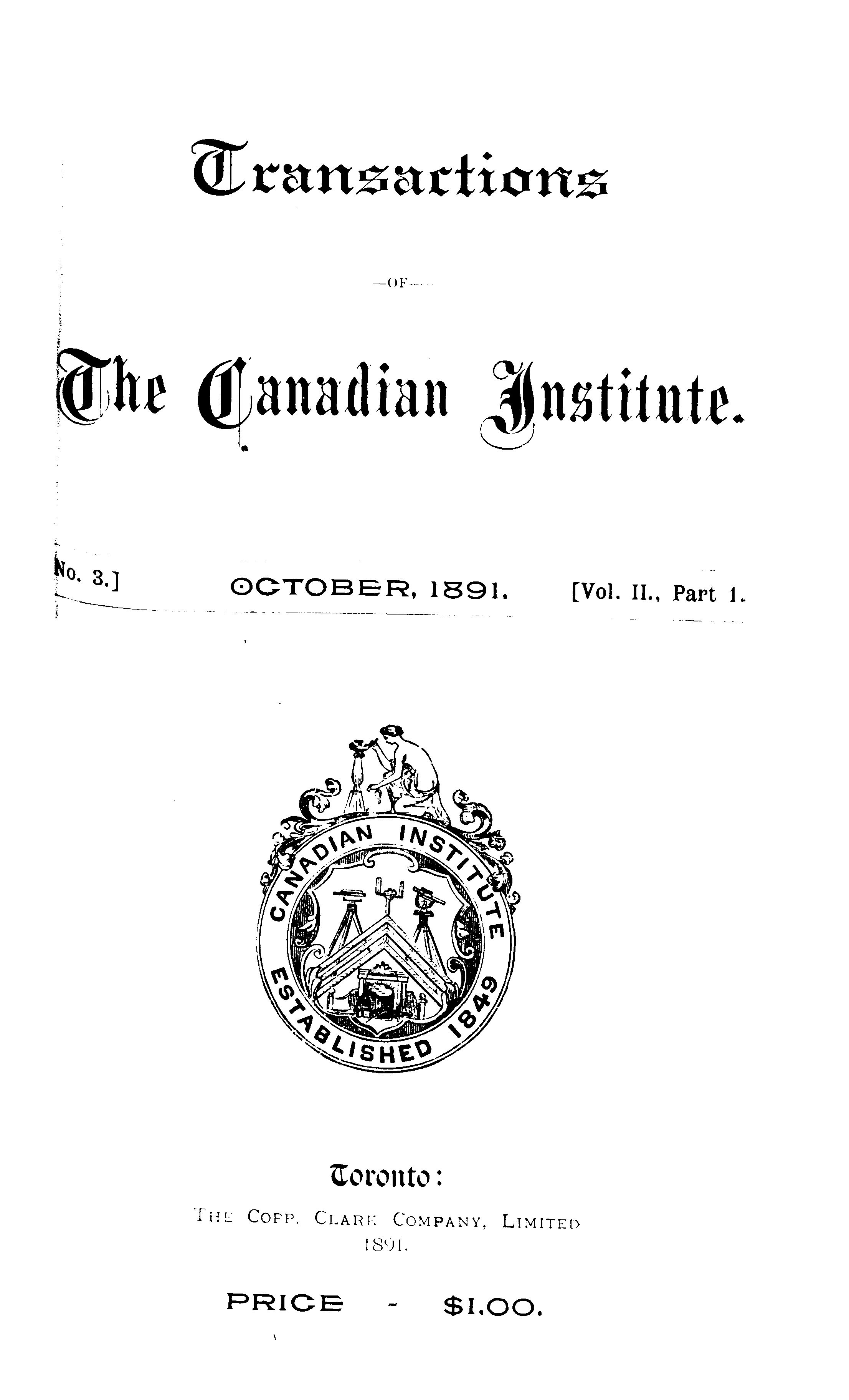 Transactions of the Canadian Institute : [Vol. 2, no. 3, pt. 1 (Oct. 1891)]