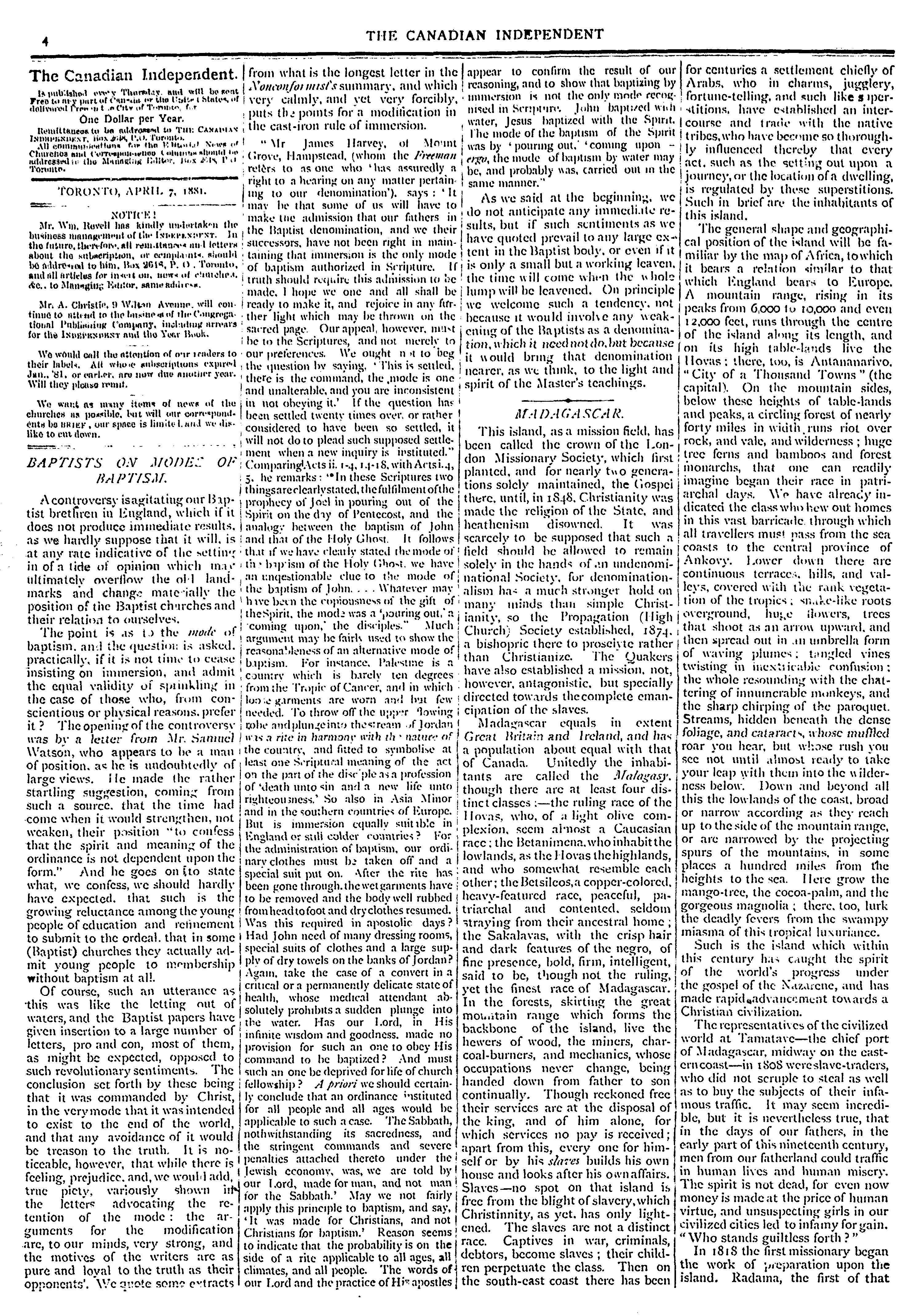 - The Canadian independent [New ser. v. 29, no. 40 [i.e. 14] (Apr. 7, 1881)]