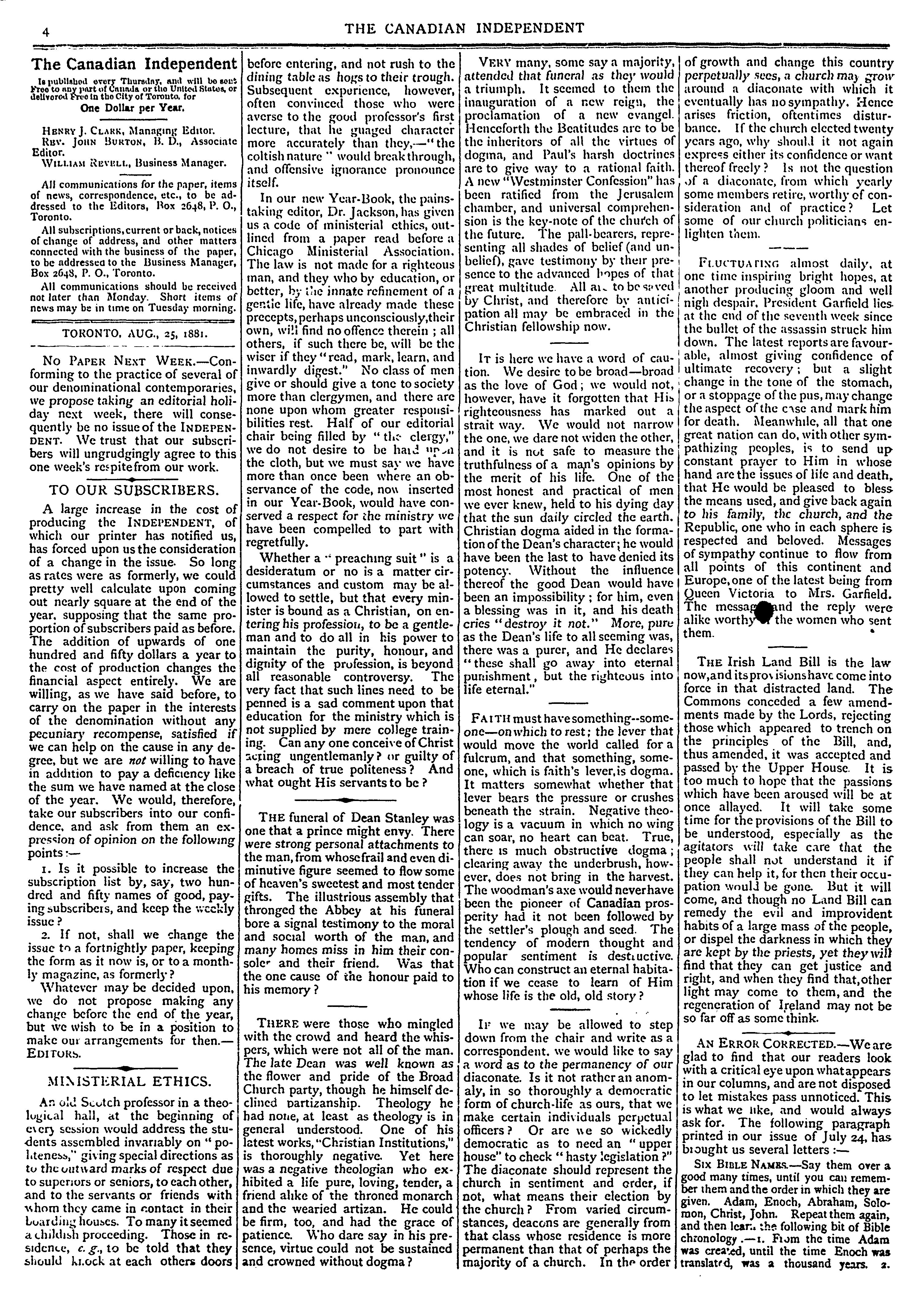 The Canadian independent : [New ser. v. 30, no. 8 (Aug. 25, 1881)]