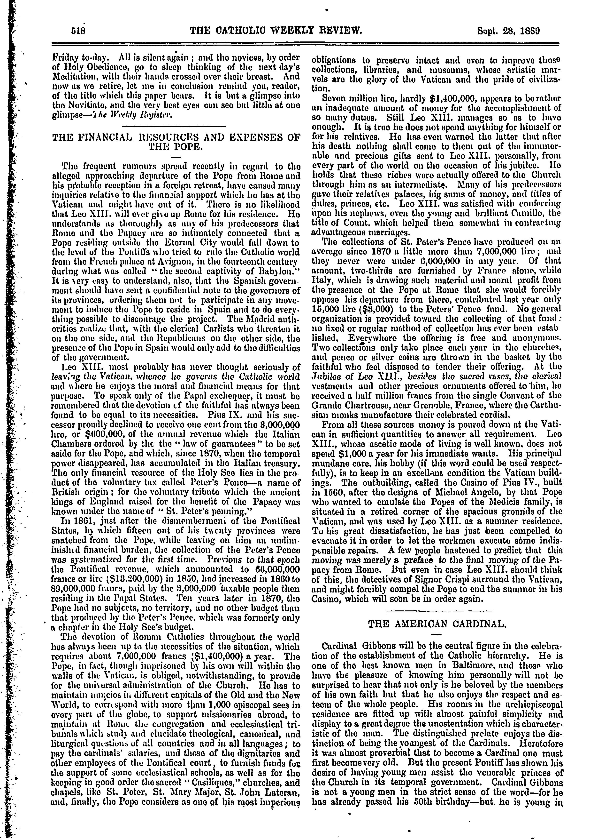 The Catholic weekly review : [i.e. 33] (Sept. 28, 1889)]